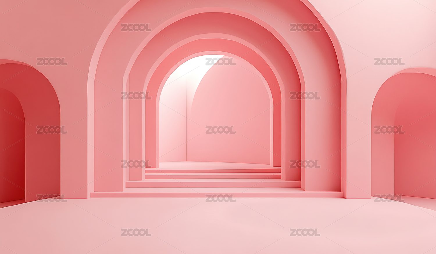 粉色拱门与阶梯的极简空间