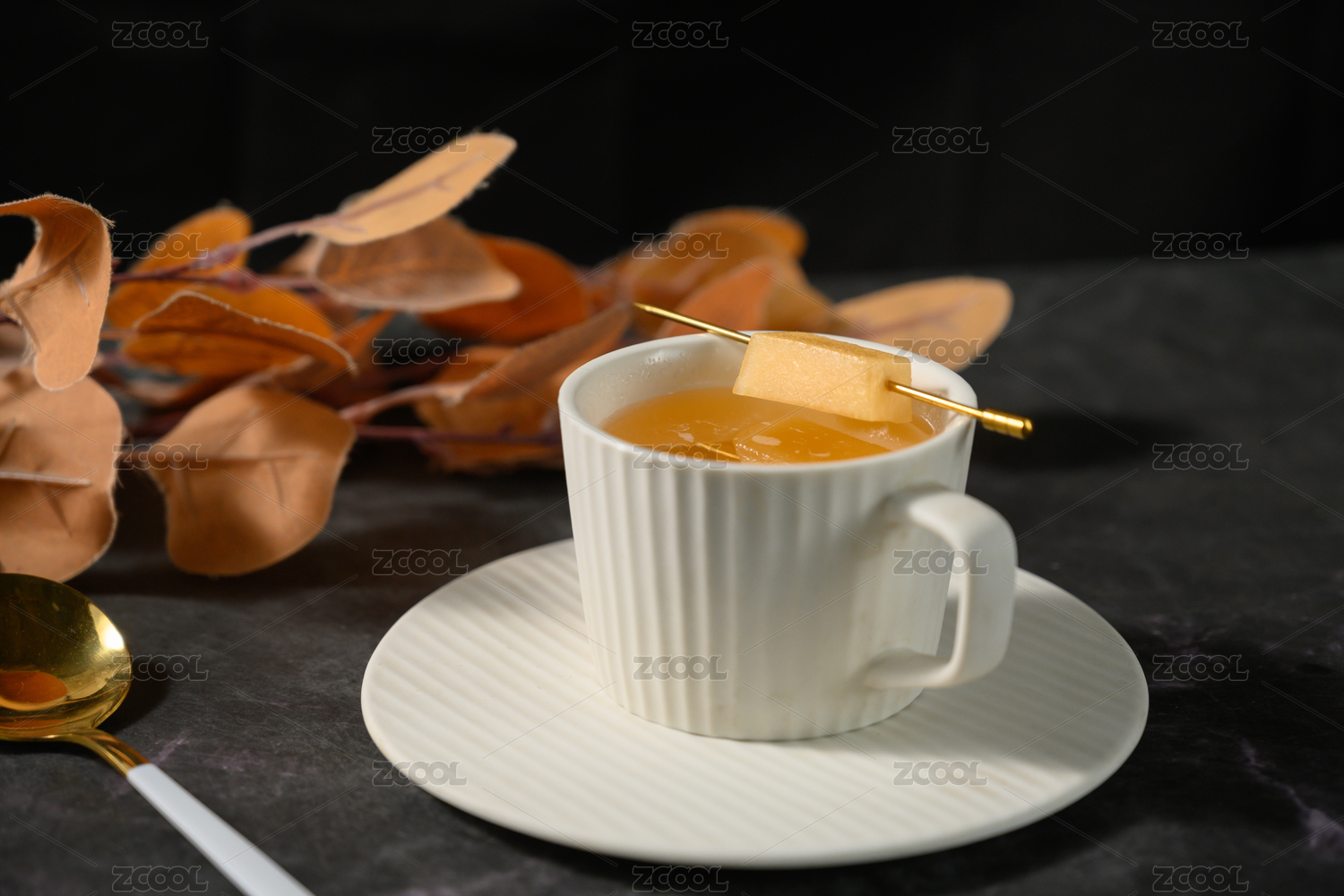 桌面上的杯子里的甘甜可口的胰岛果茶