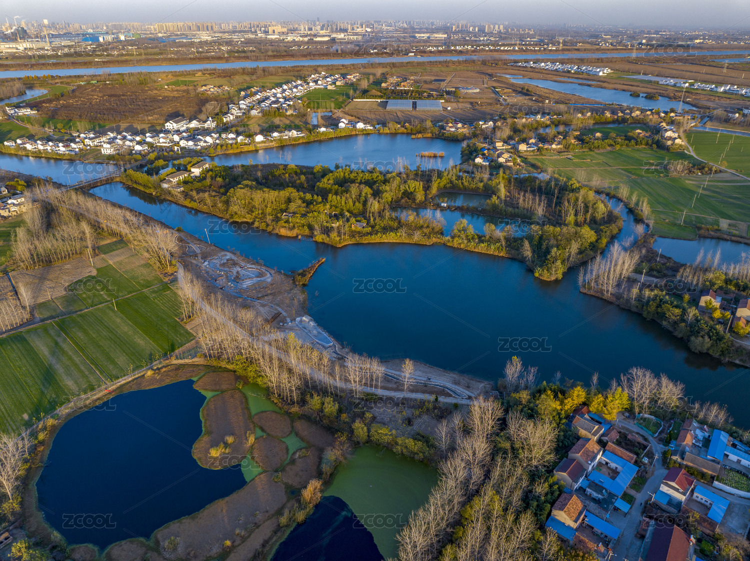 河南省平顶山市白龟湖城市湿地公园航拍图片