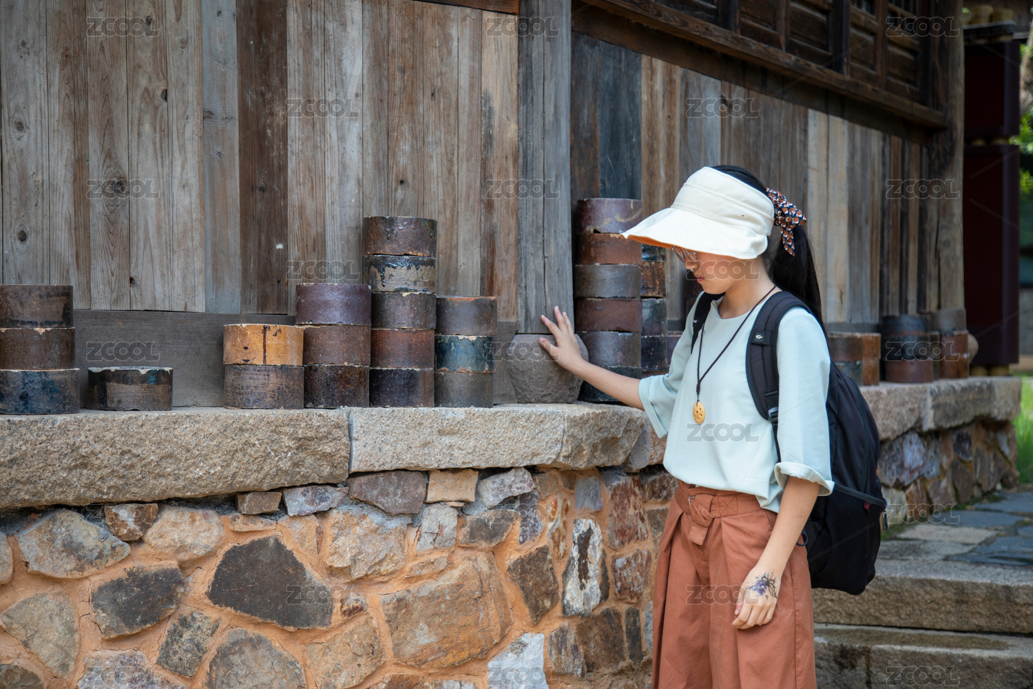夏天穿着长裙的女孩在北京的南锣鼓巷胡同