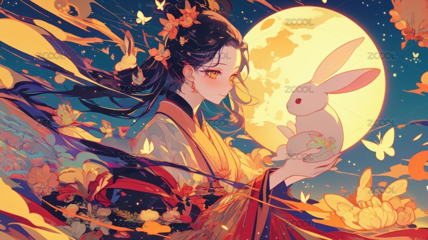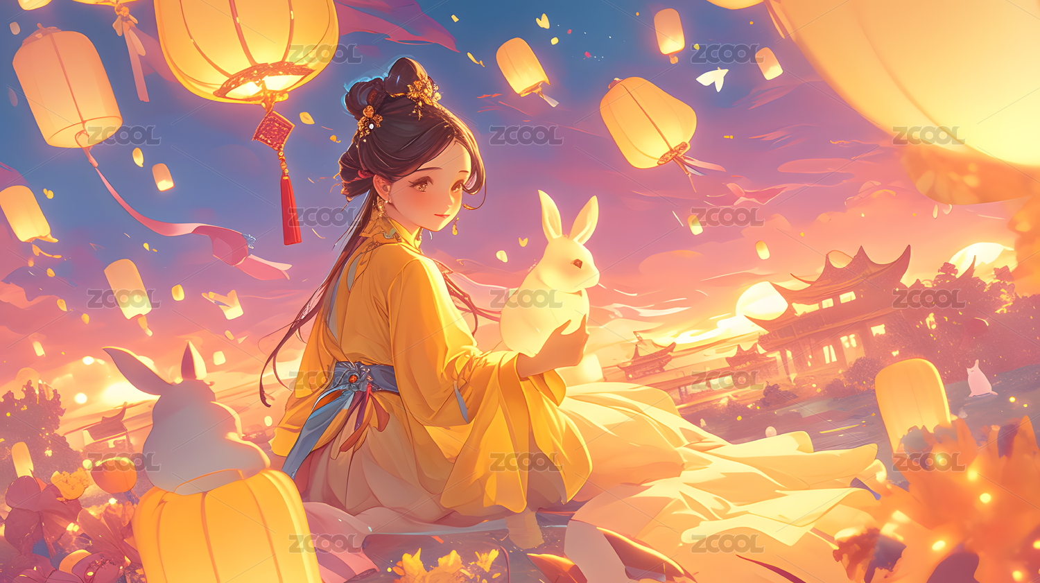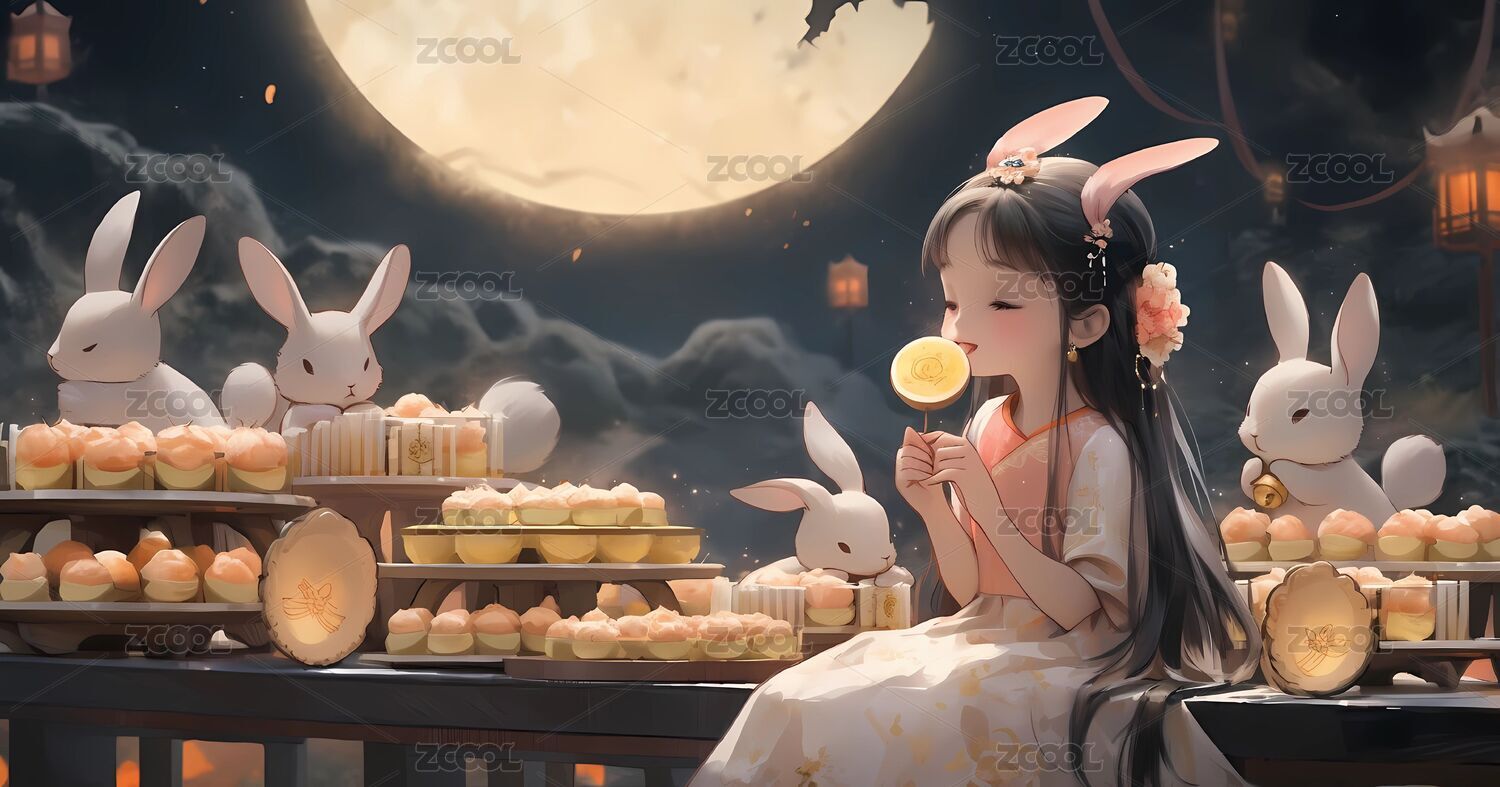 中秋节,月饼,兔子,玉兔,月亮,卡通,团圆,幸福,中秋,花灯