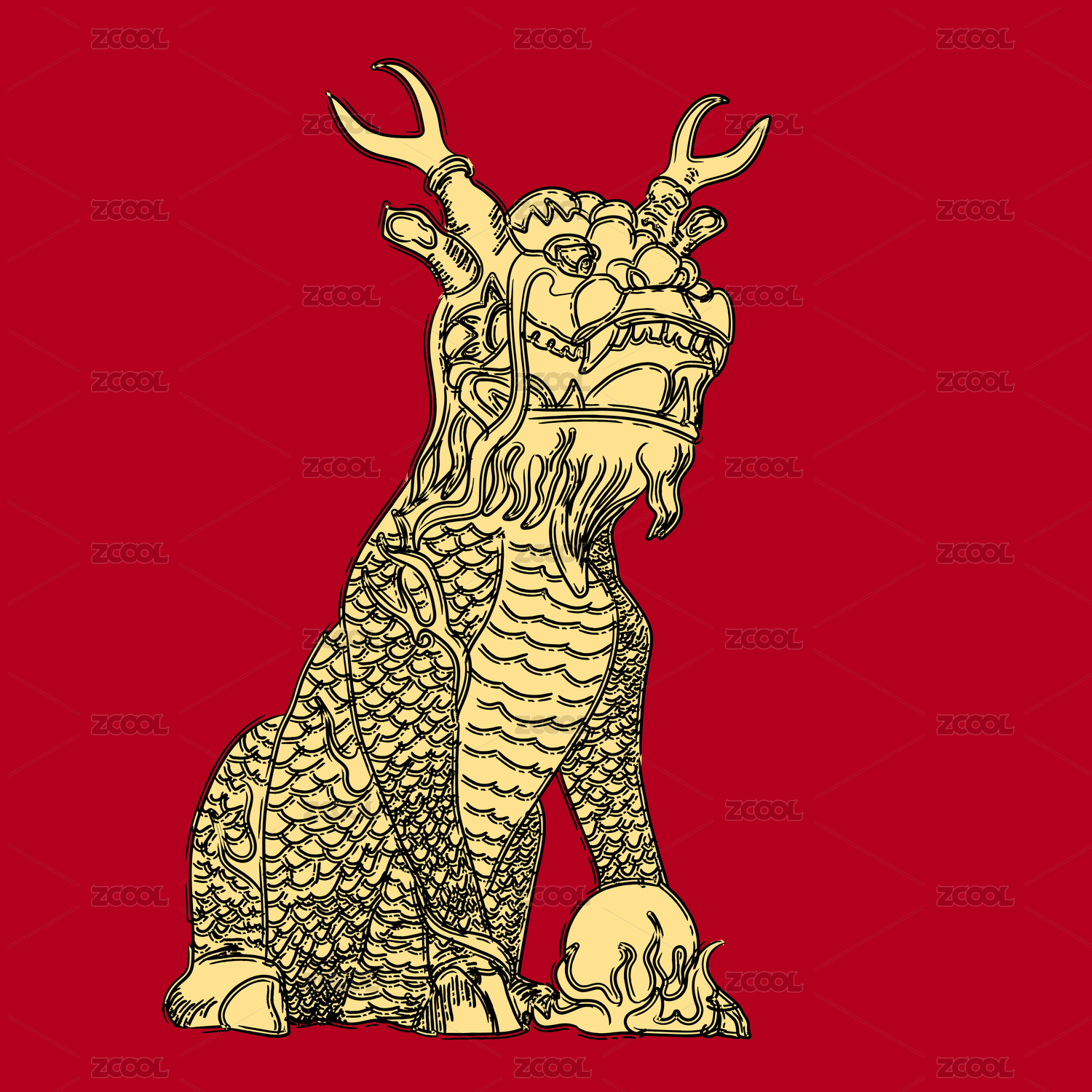 手绘,钢笔画,中国画,矢量,图腾,年画,中国风,辟邪,瑞兽,插画