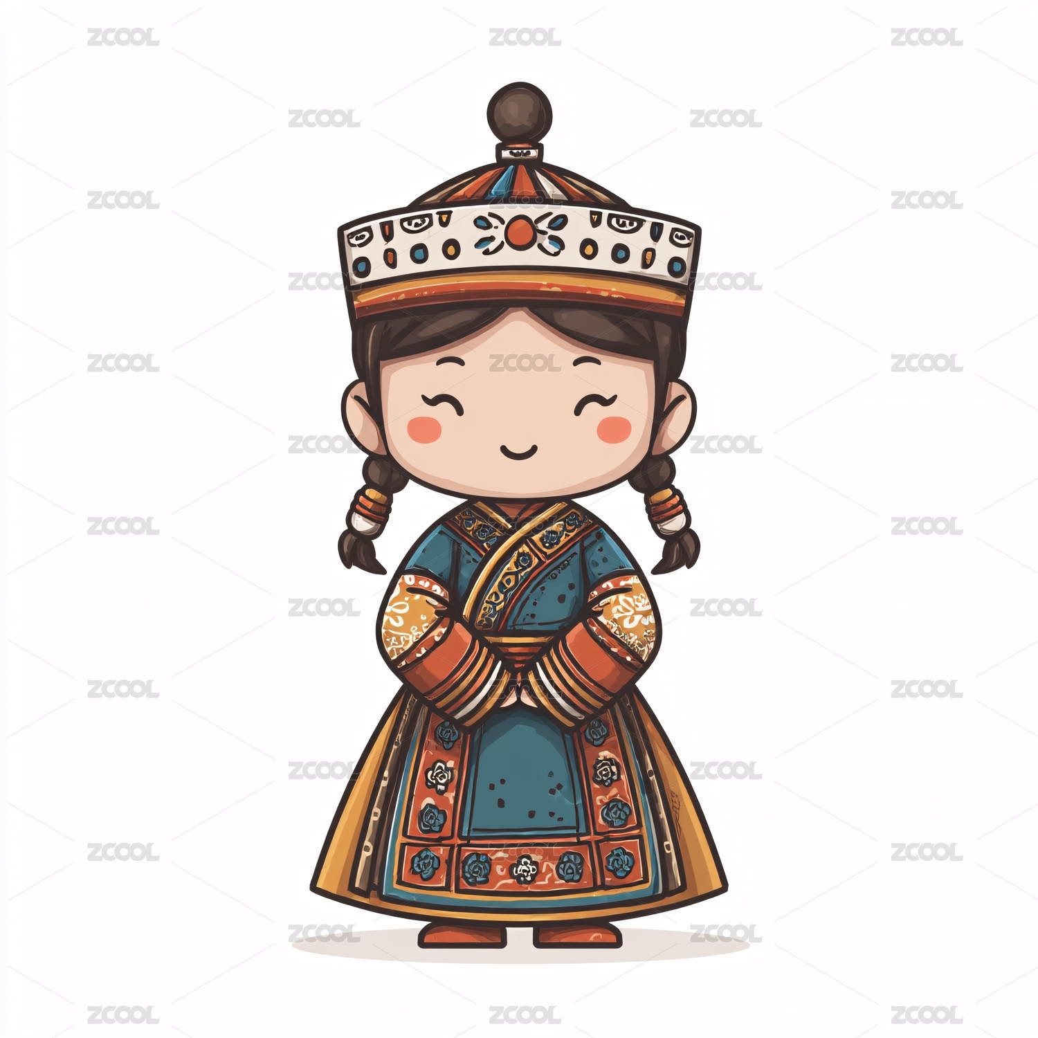 插画,五十六个民族,卡通,元素,可爱,传统文化,国庆,少数民族,少女,女孩