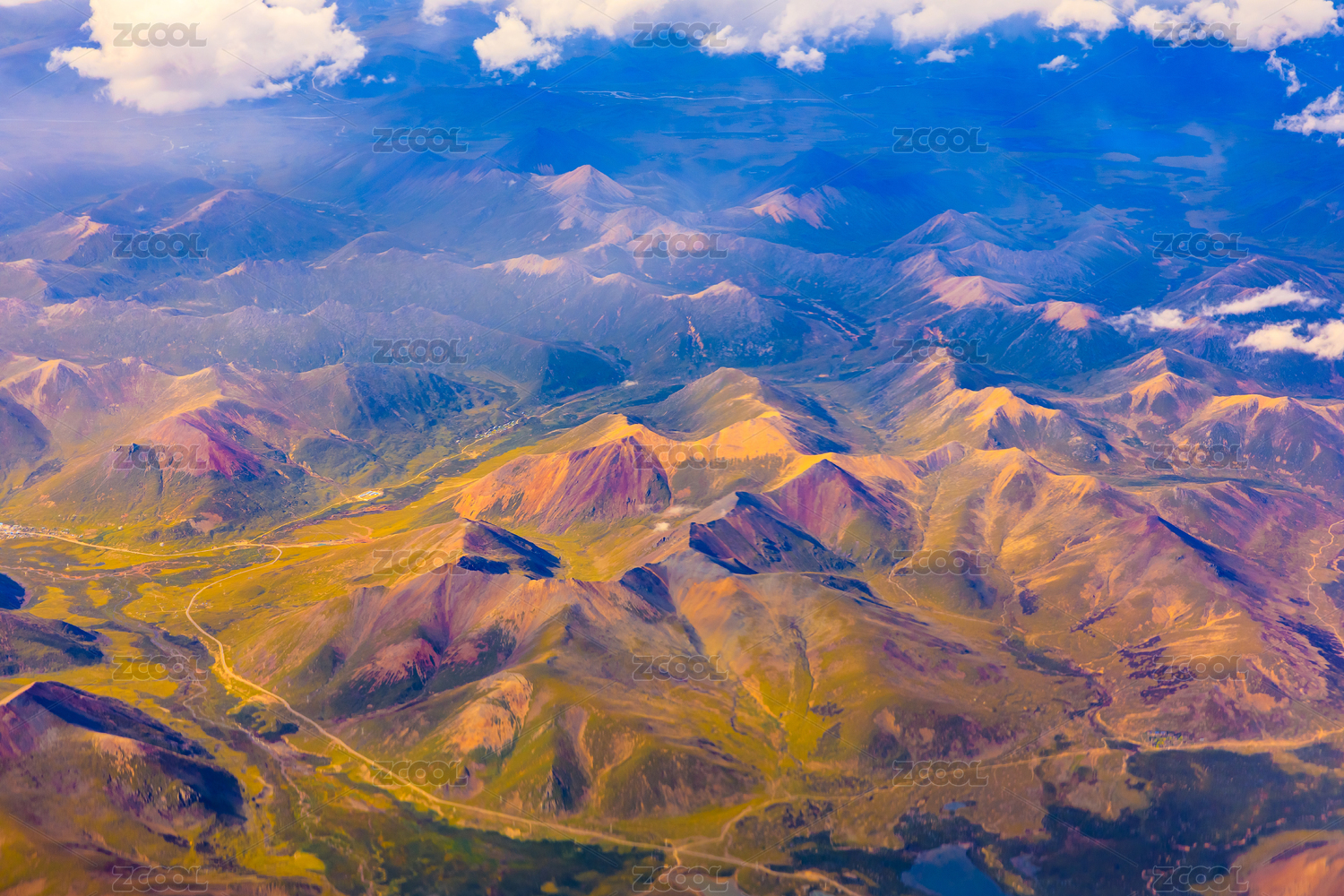 平原,高空,俯看,大地,壮观,奇特,雪山,高原,山川,河流