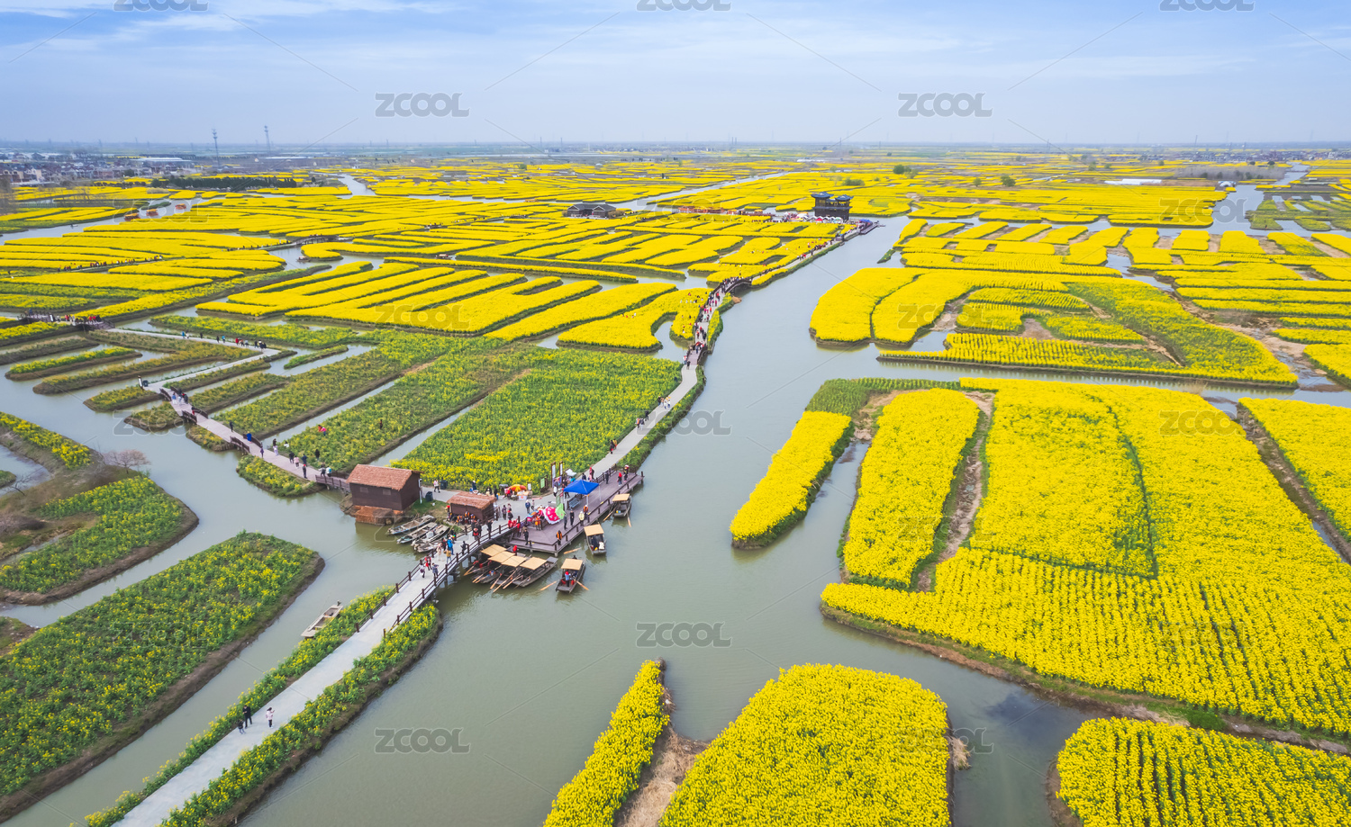 中国江苏泰州兴化千垛景区水上油菜花自然风