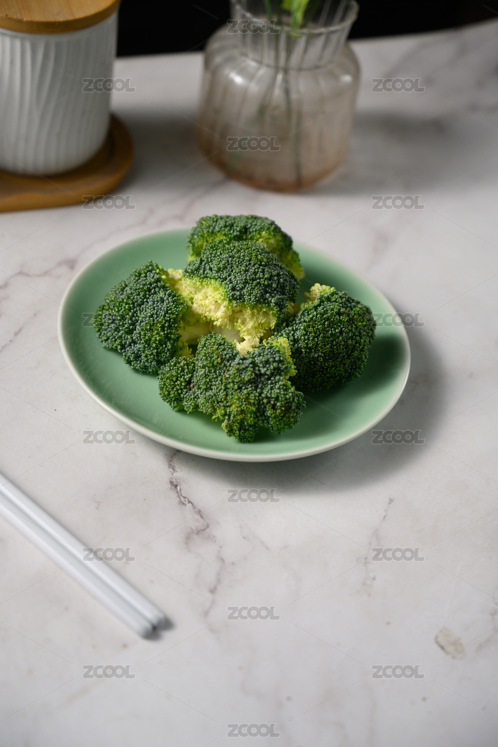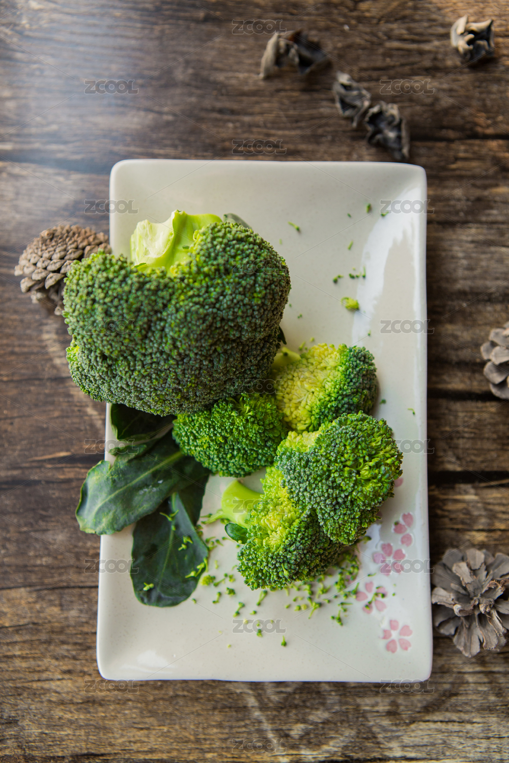 桌面上的盘子里的新鲜西兰花
