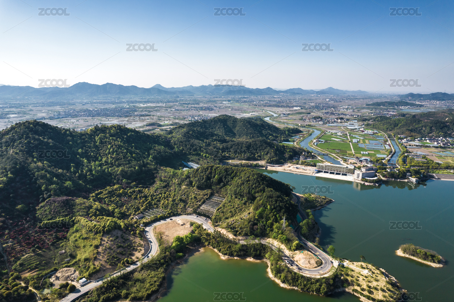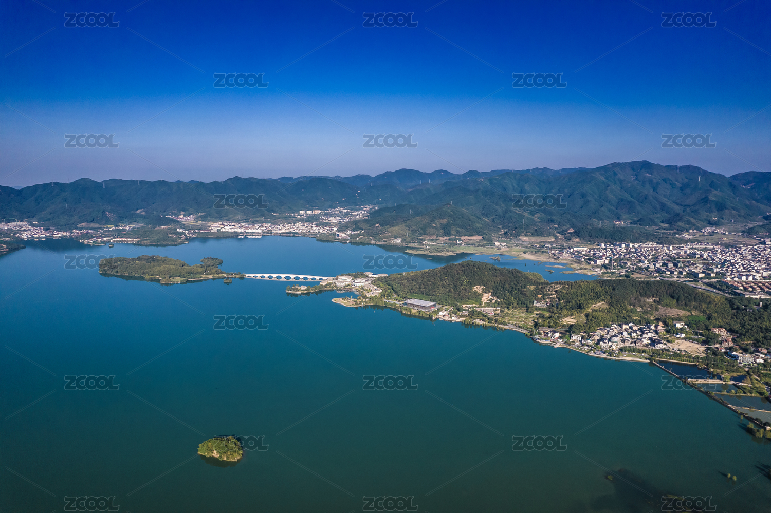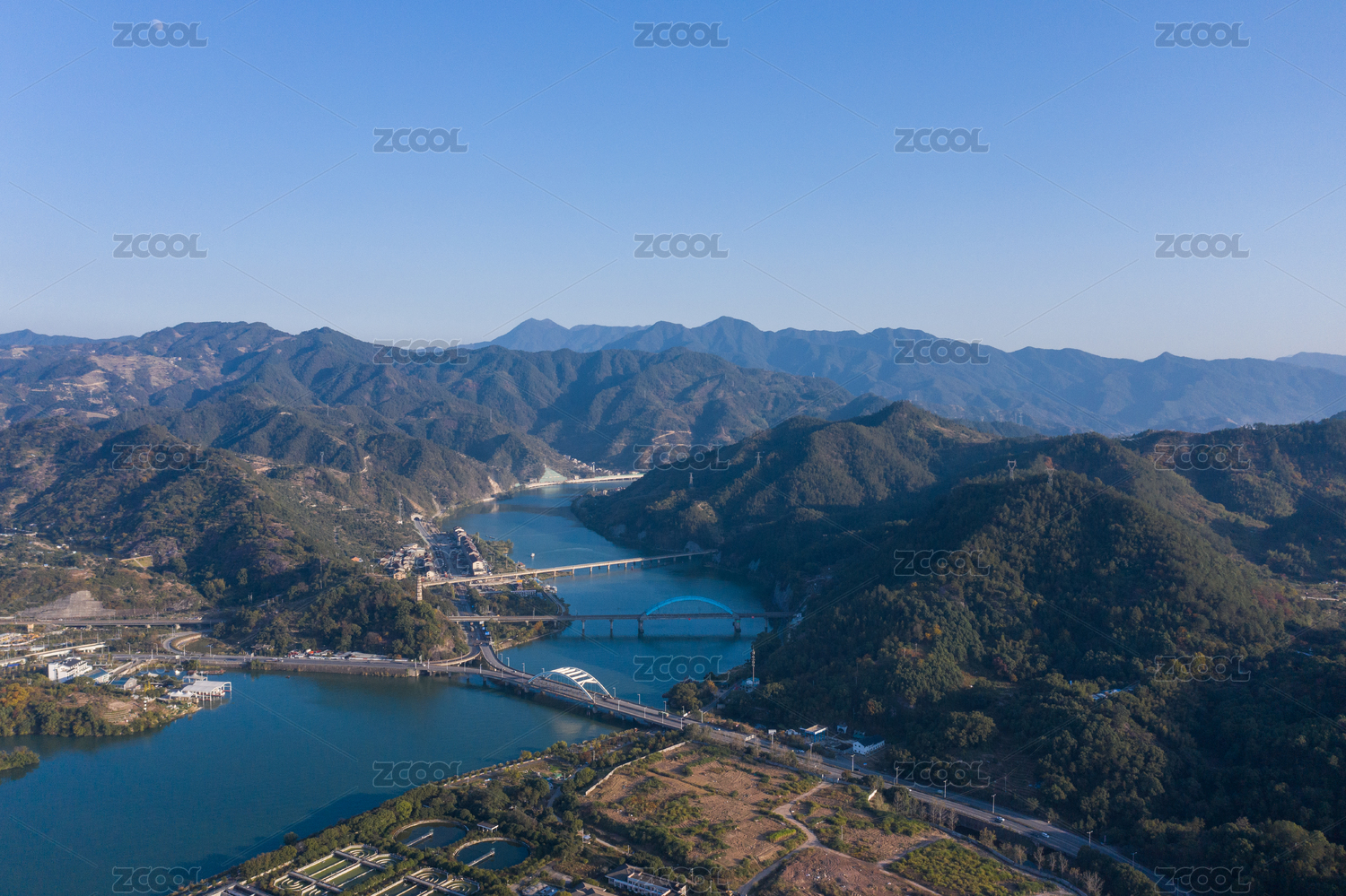 中国浙江省杭州市建德梅城镇沿江风光航拍