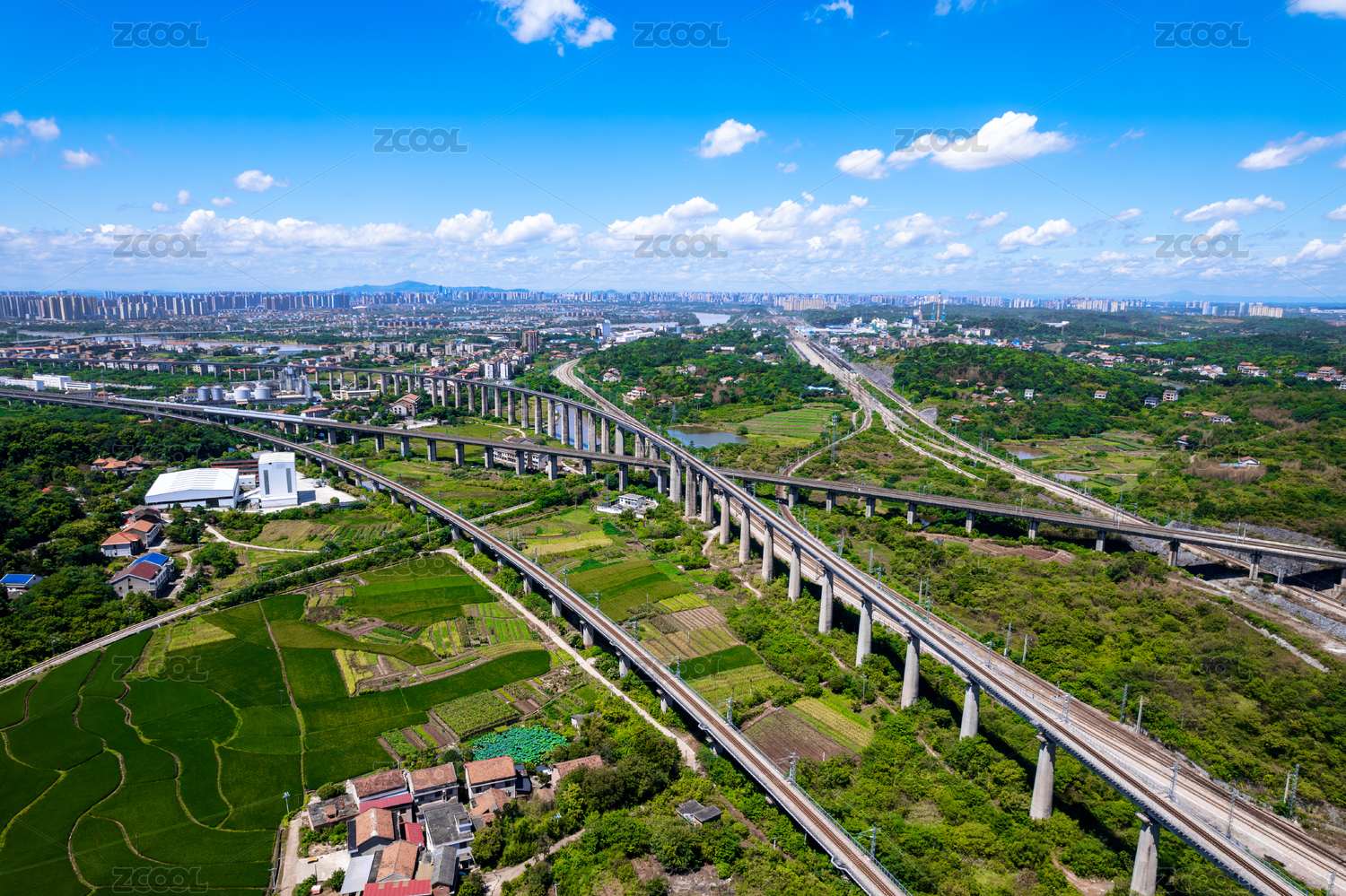 中国湖南衡阳轨道交通高架枢纽交汇航拍