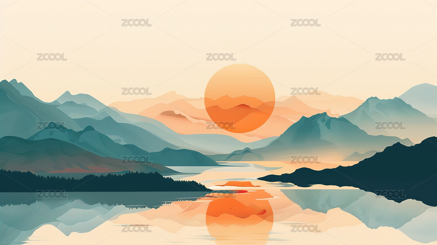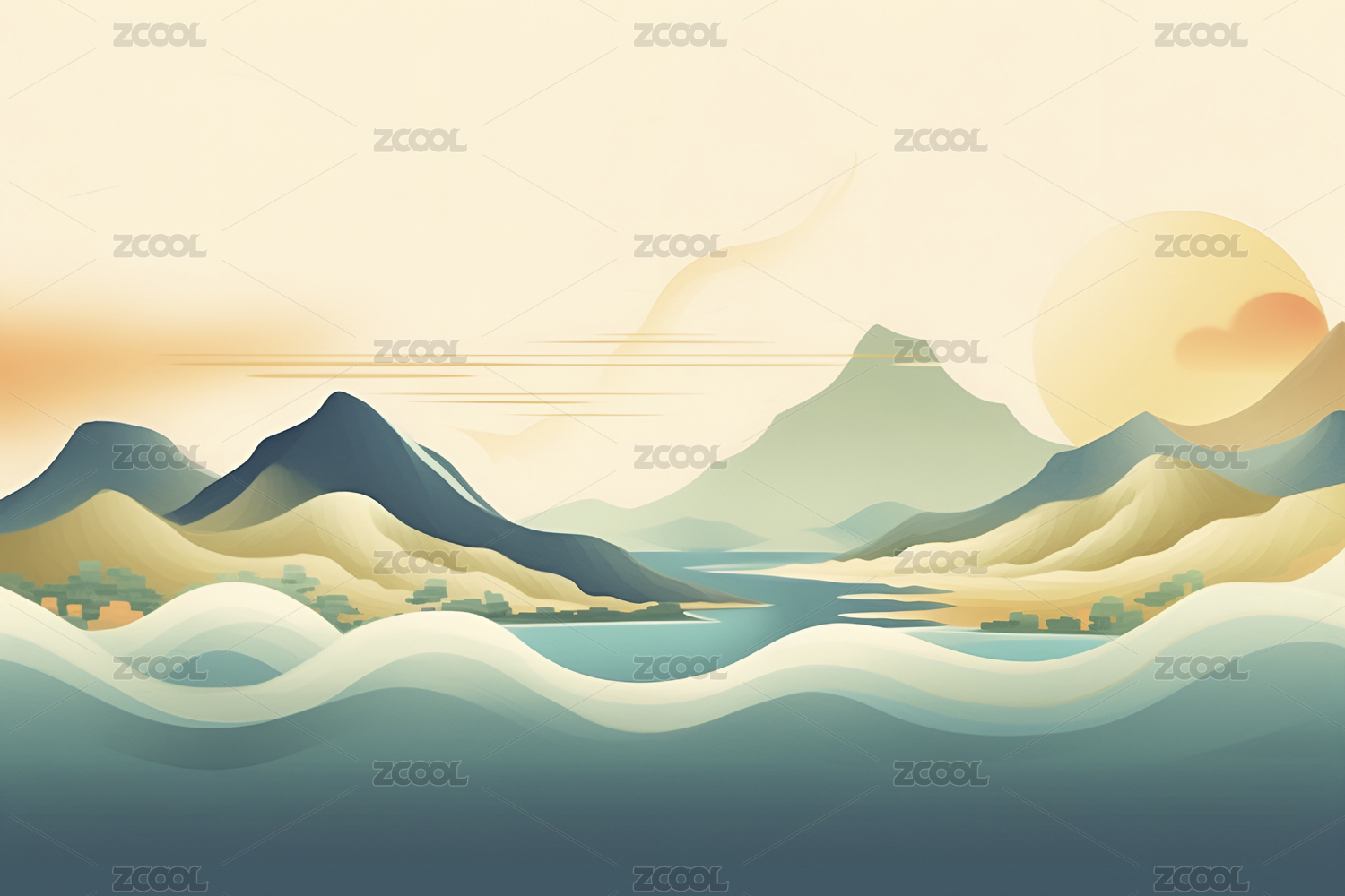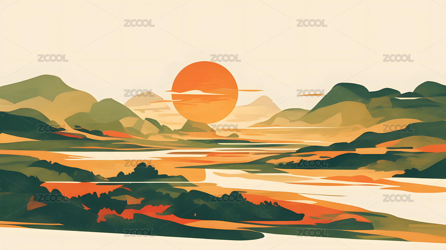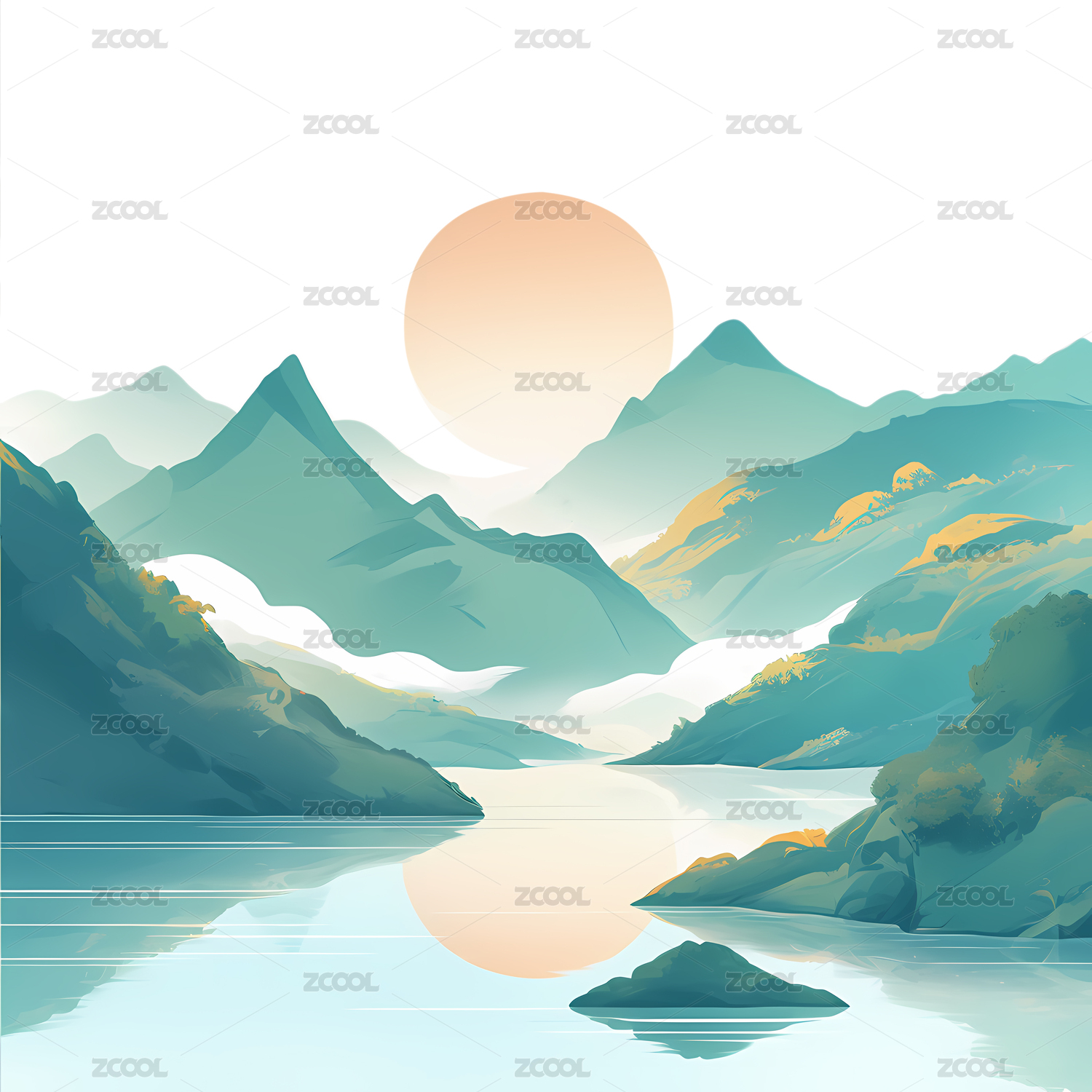 风景,矢量,插画,2D,中国,山水,简约,复古,彩色,简单