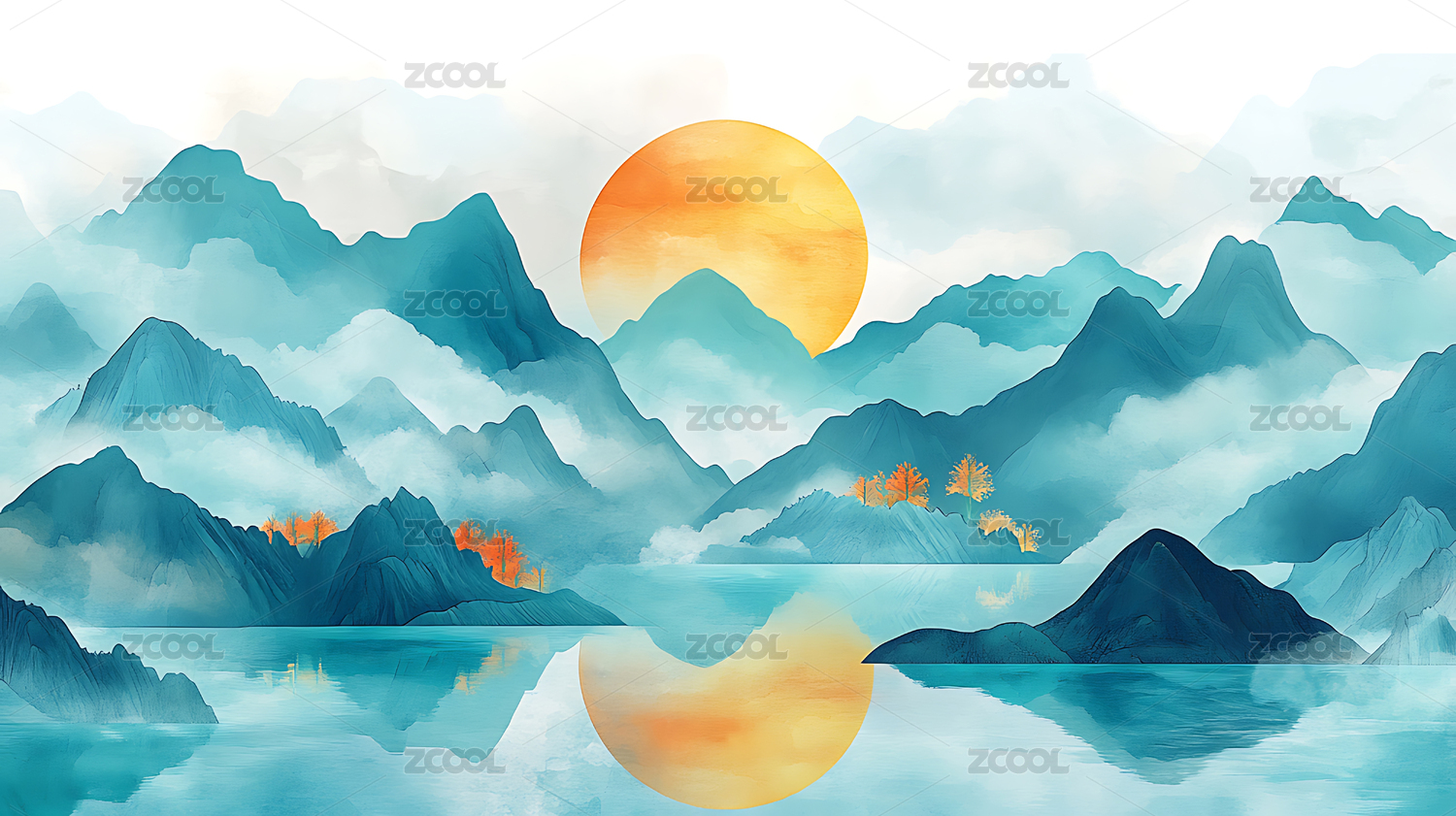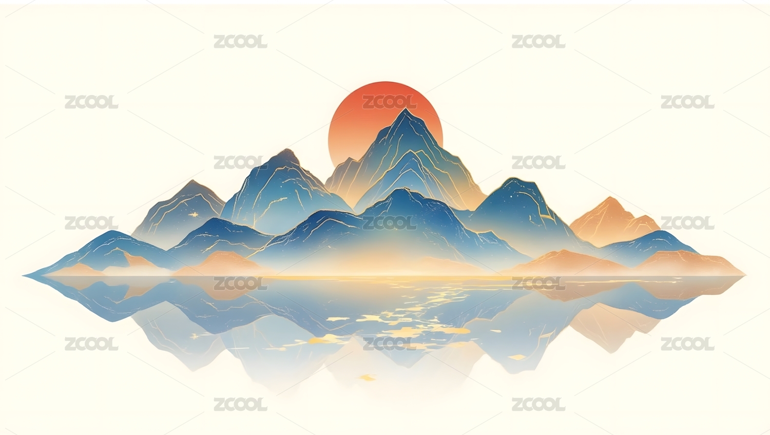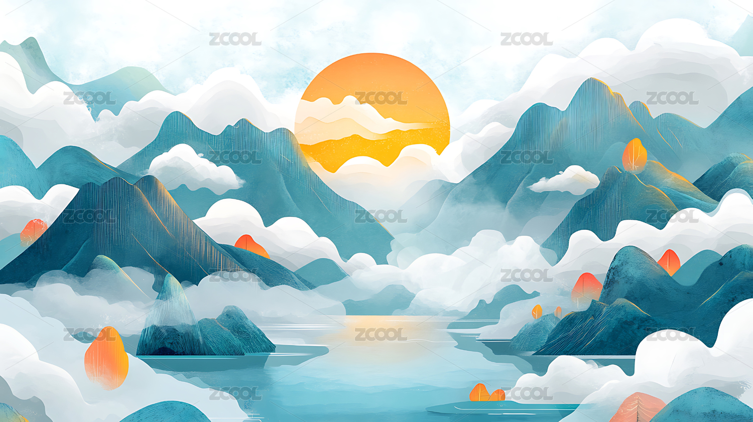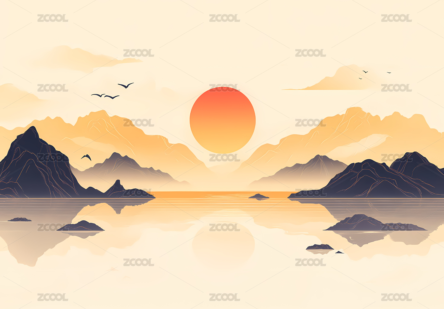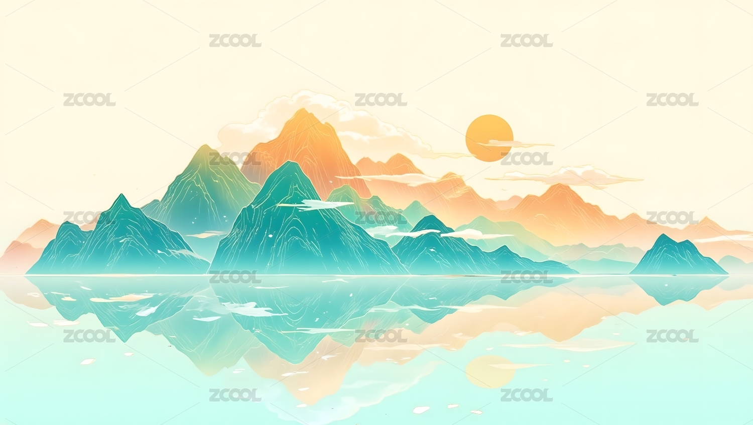风景,矢量,插画,2D,中国,山水,简约,复古,彩色,简单