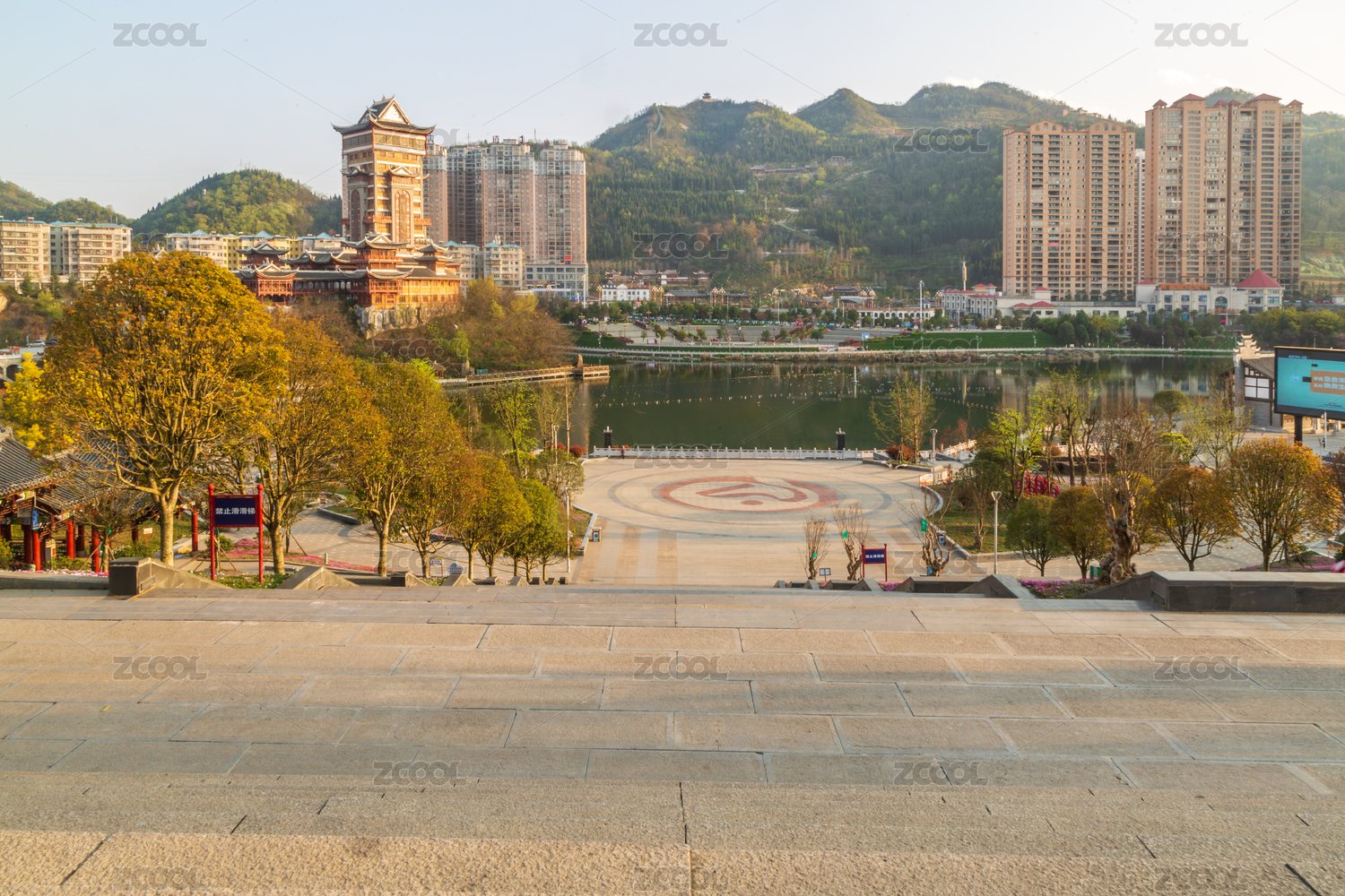 贵州省毕节市同心城市公园广场和大门仿古楼阁