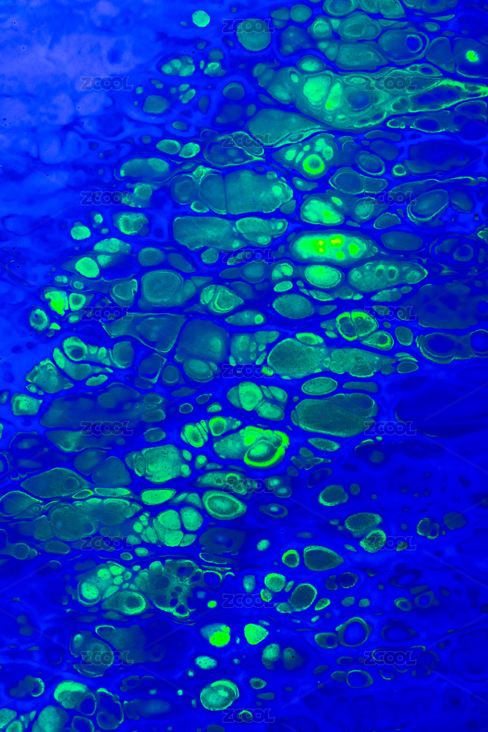 蓝色细胞抽象流体画