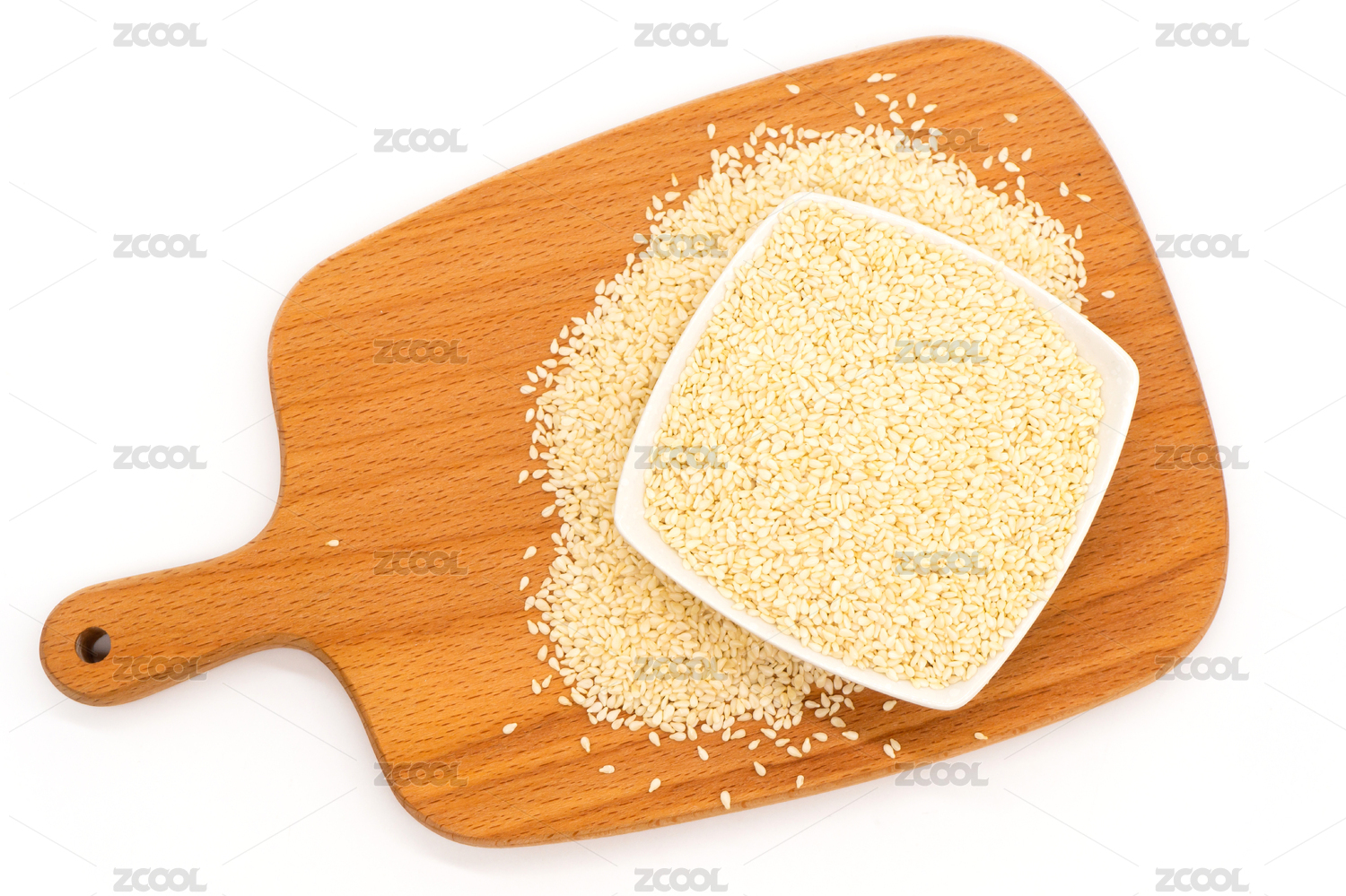 白底上木碗里的白芝麻