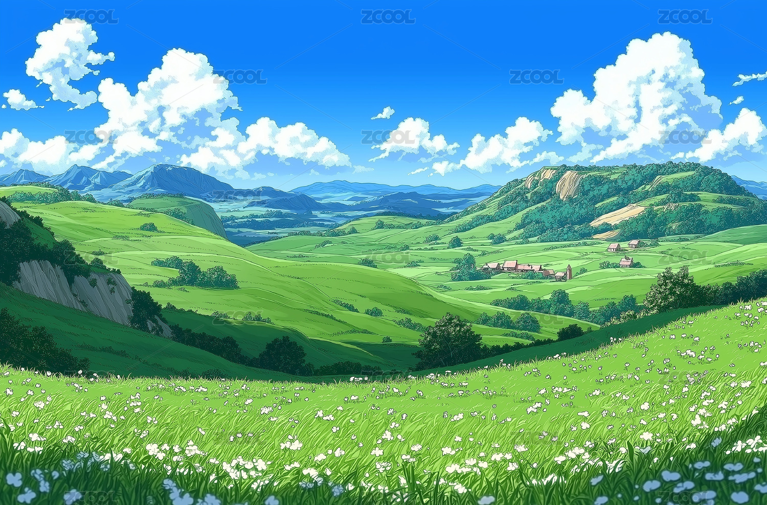 漫画风格晴朗的户外风景