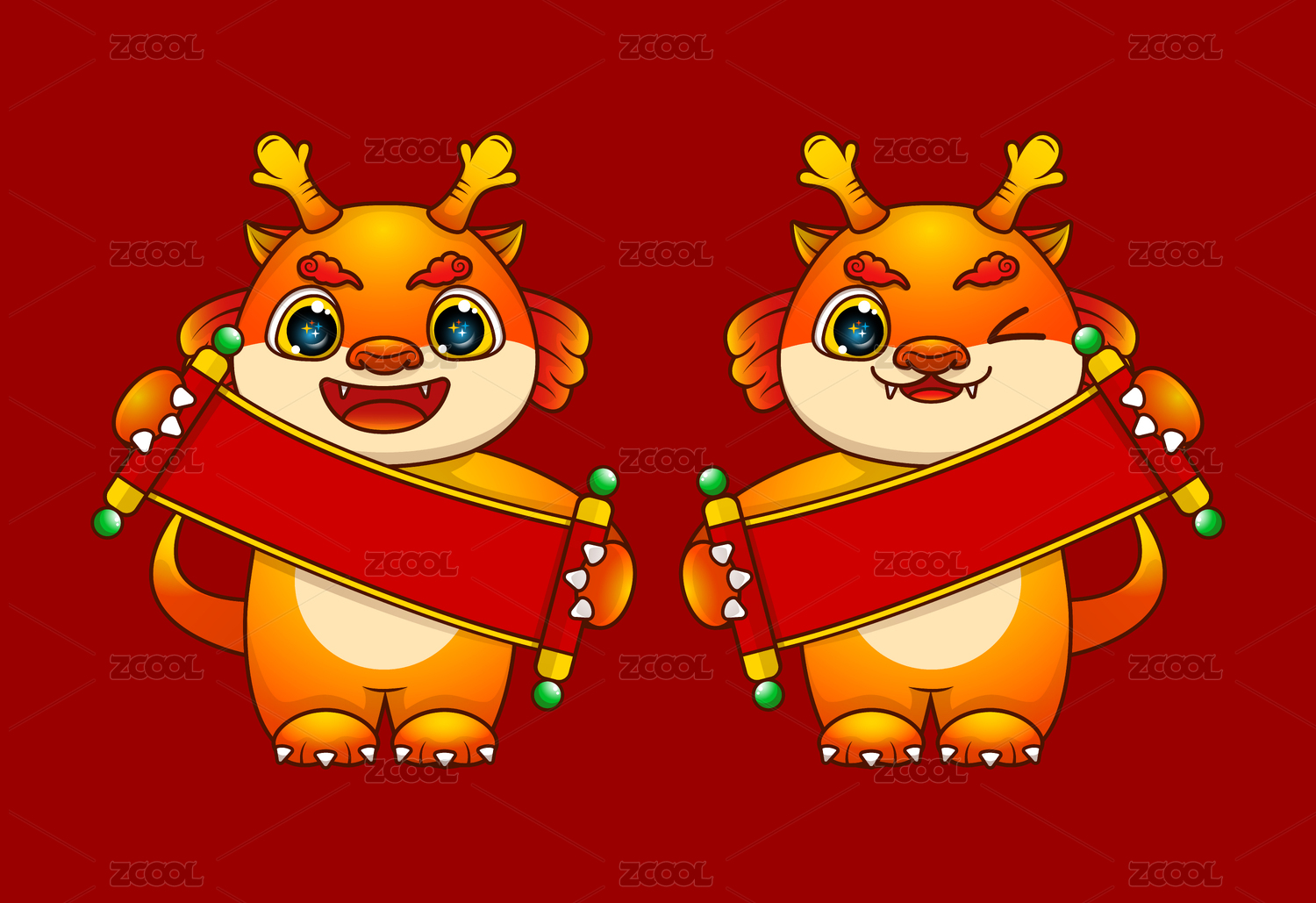 春节卡通拟人龙形象庆祝矢量横幅插画