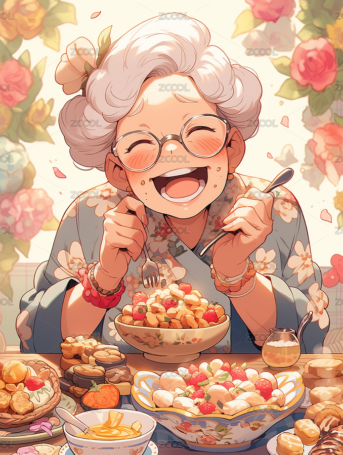 花丛,养护,花草,老奶奶,插画,人物,奶奶,老人