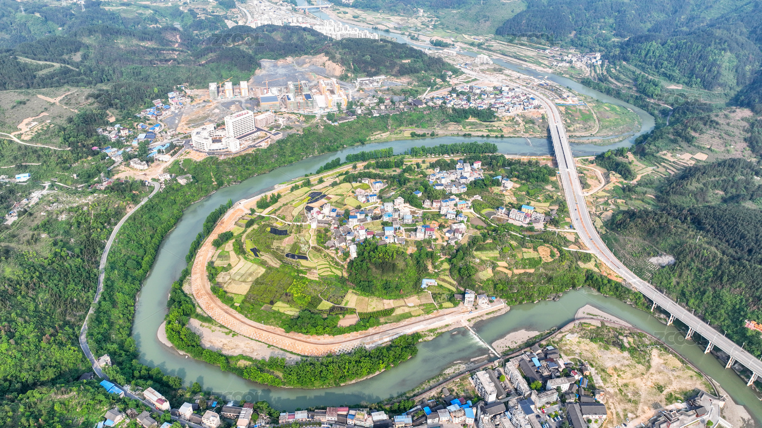 中国安徽省黄山市歙县鱼梁坝景区航拍