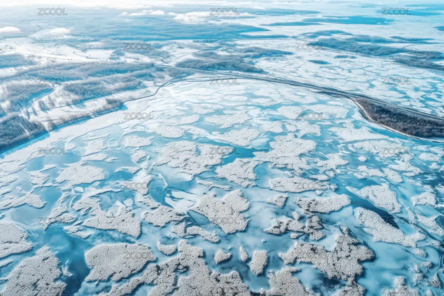 俄罗斯贝加尔湖冬季蓝冰湖风光航拍