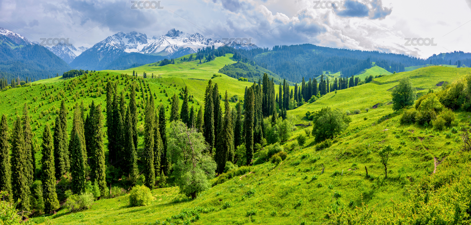 中国新疆伊犁库尔德宁高山草甸森林自然风光