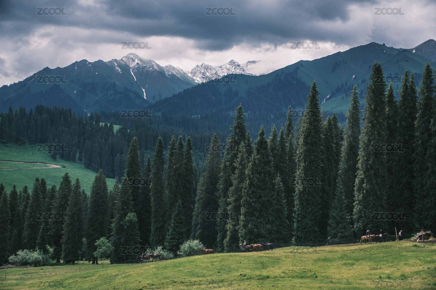 中国新疆伊犁州恰西森林公园草原云杉景观