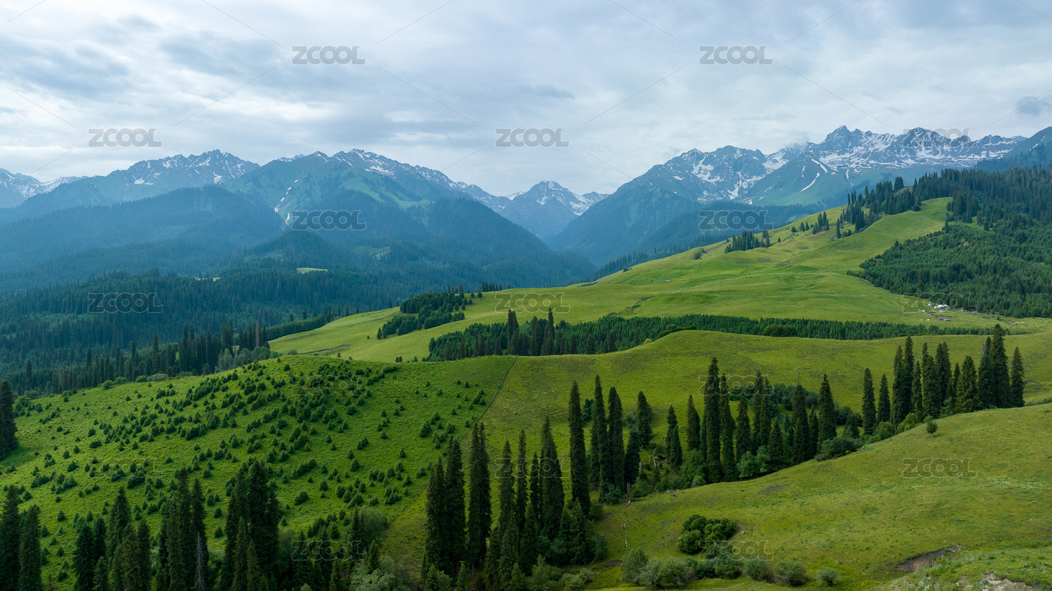 中国新疆伊犁库尔德宁草原高山草甸森林风光