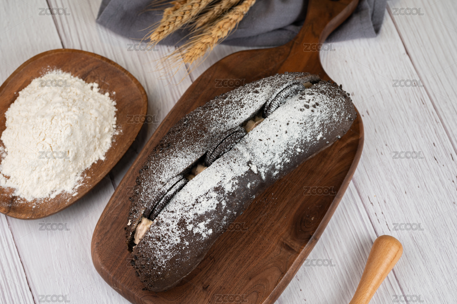 木板上美味的奥利奥夹心面包