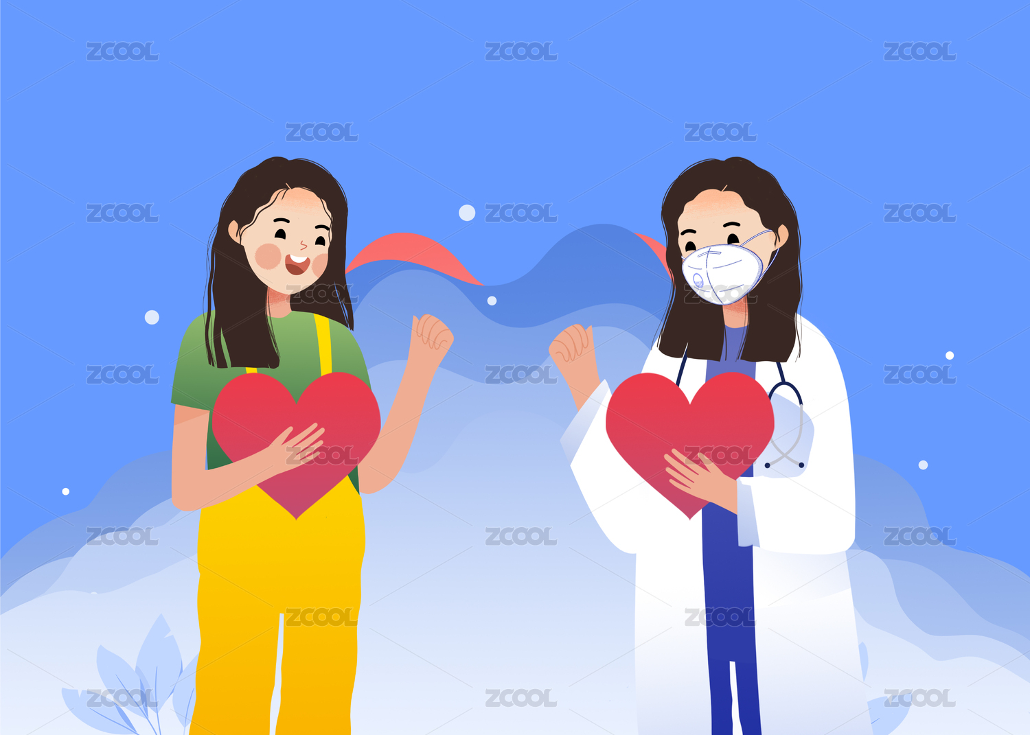 红十字日医生护士抗疫插画