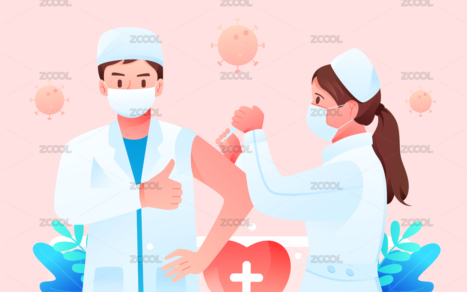 医生疫情接种新冠疫苗保障医疗健康矢量插图