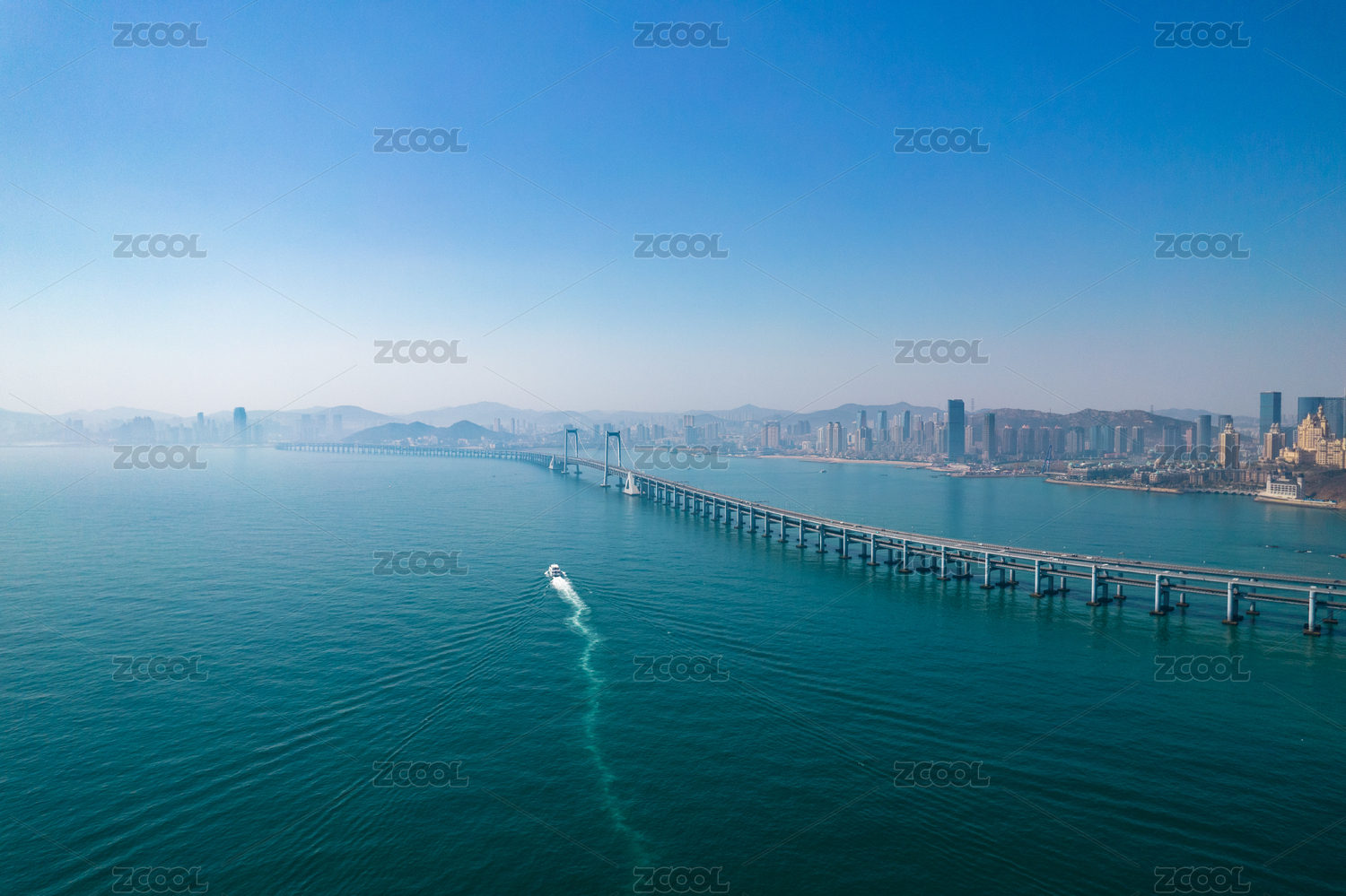 航拍大连跨海大桥蔚蓝色的大海