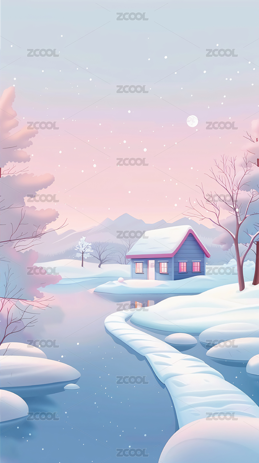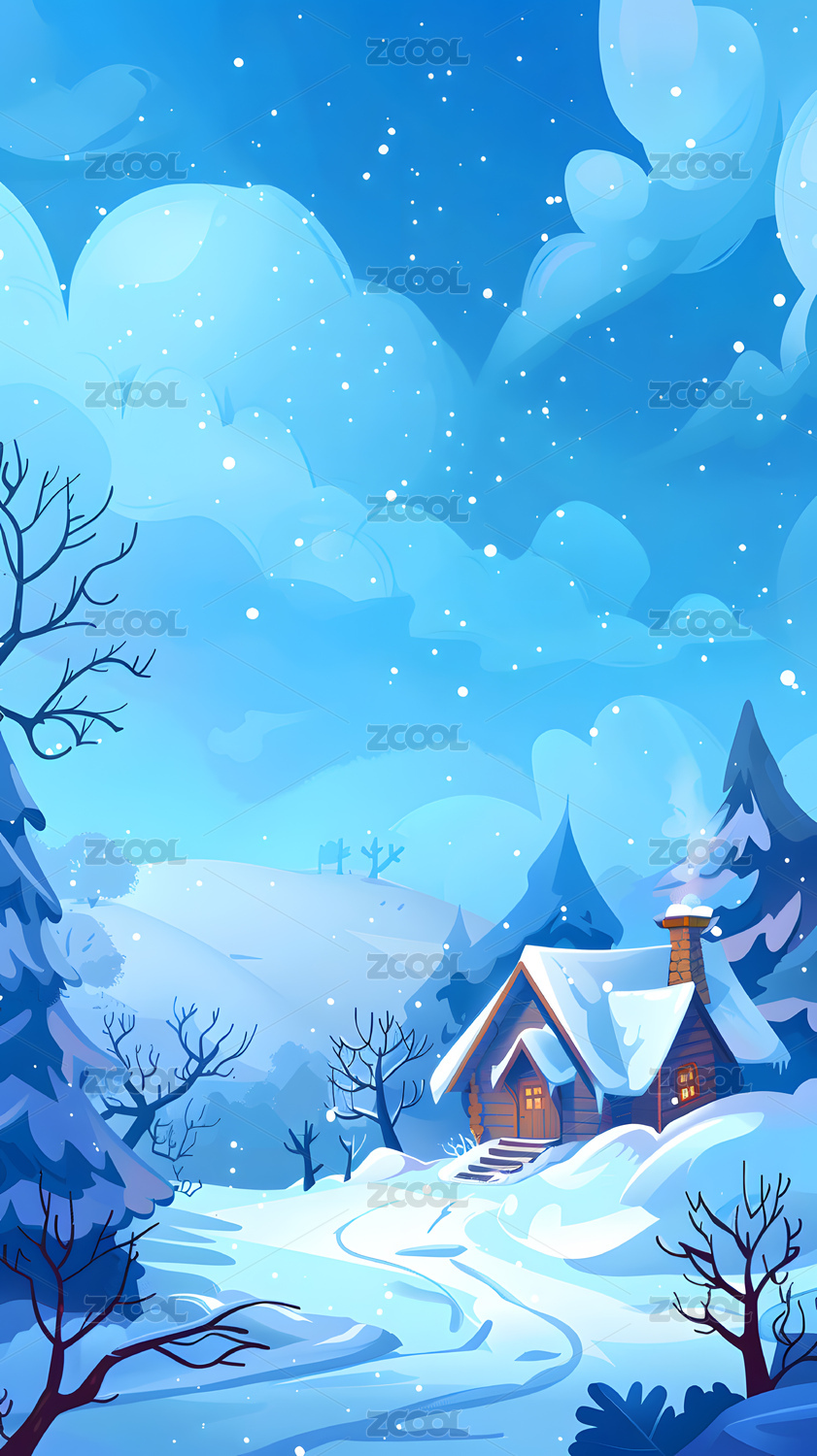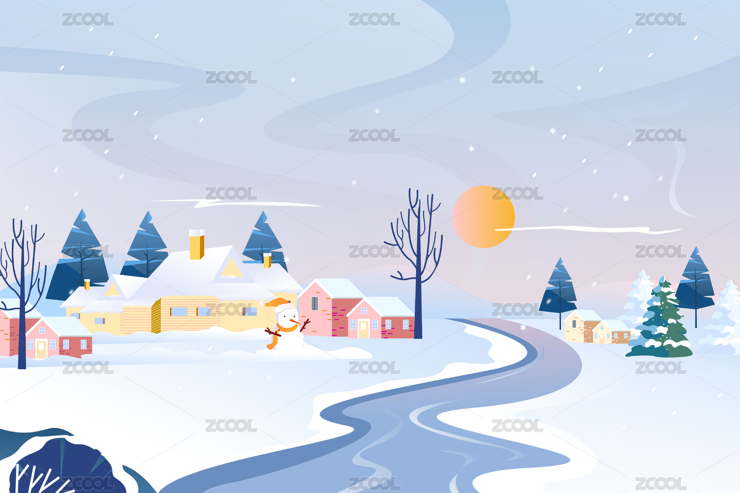 卡通手绘唯美冬天雪景小寒大寒冬季插画
