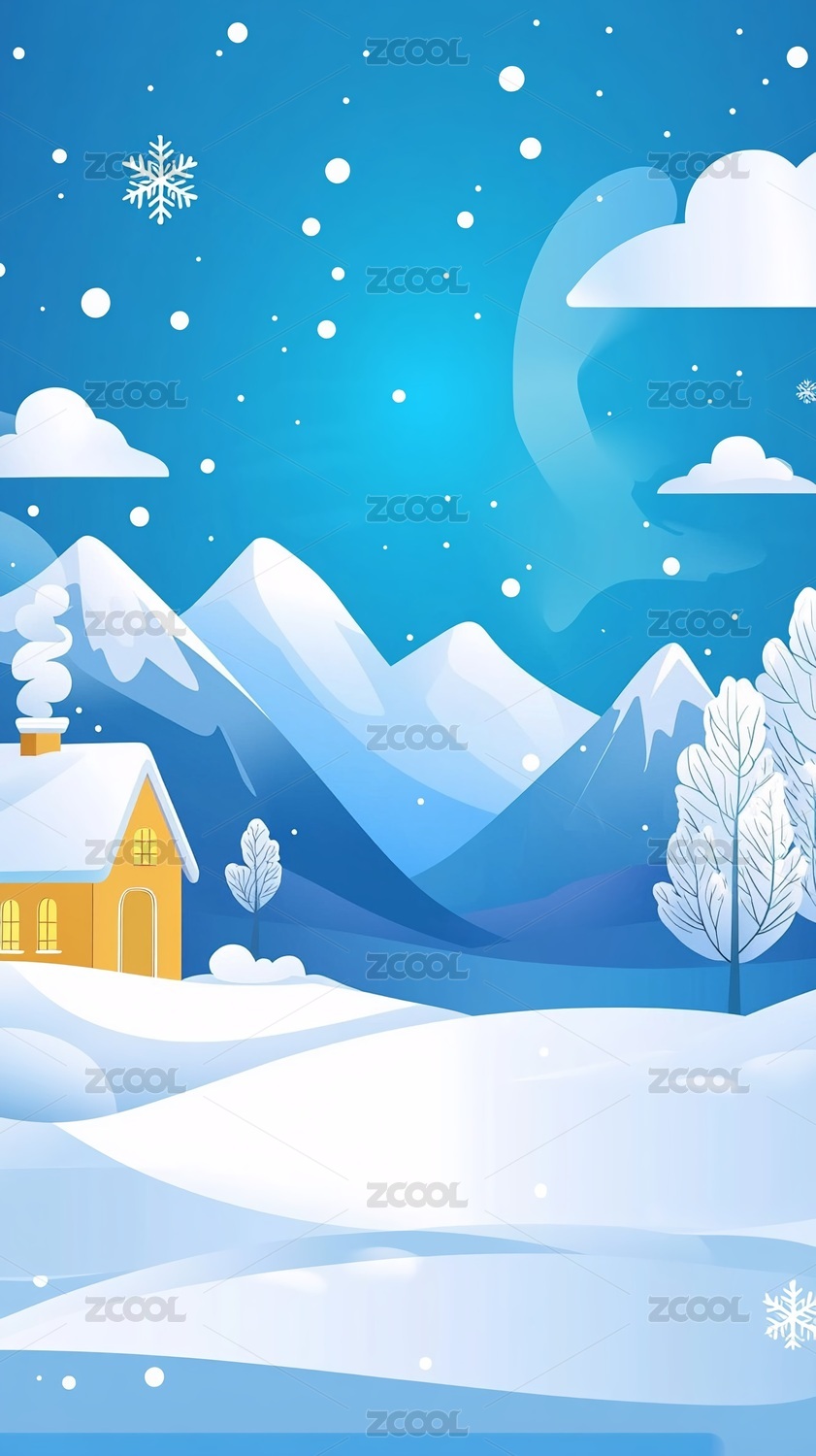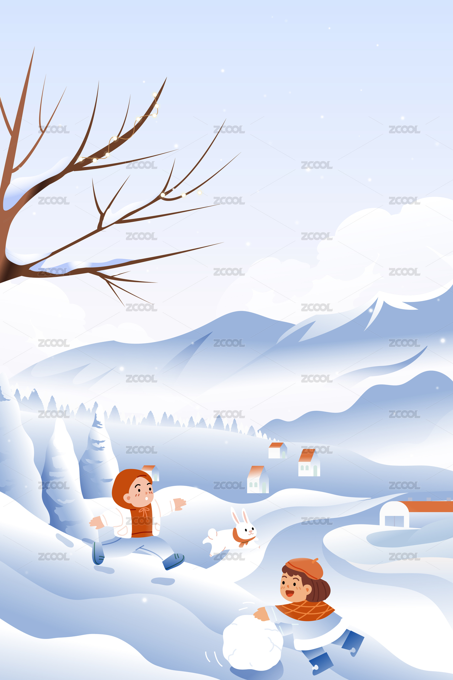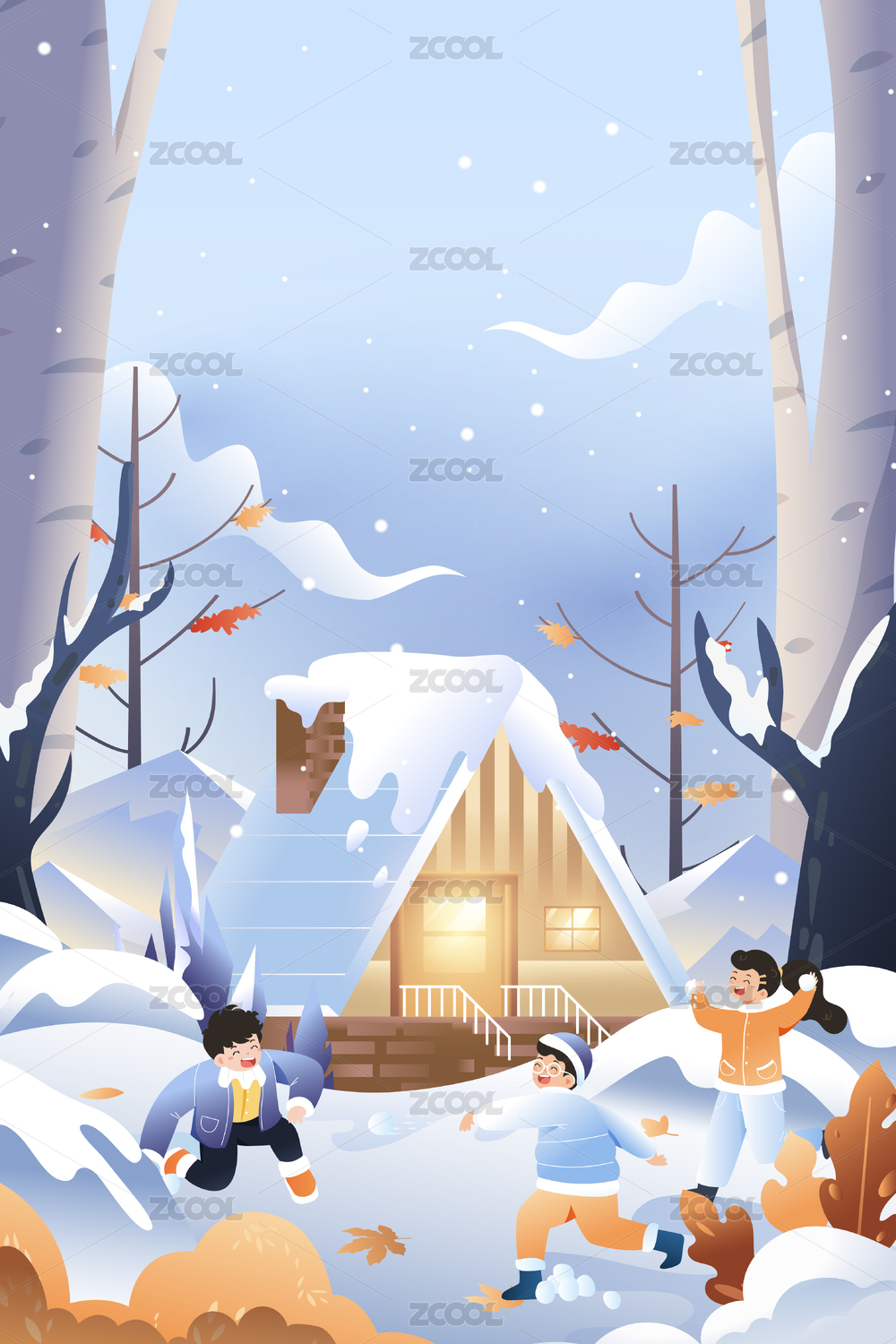 卡通手绘唯美冬天雪景小寒大寒冬季插画