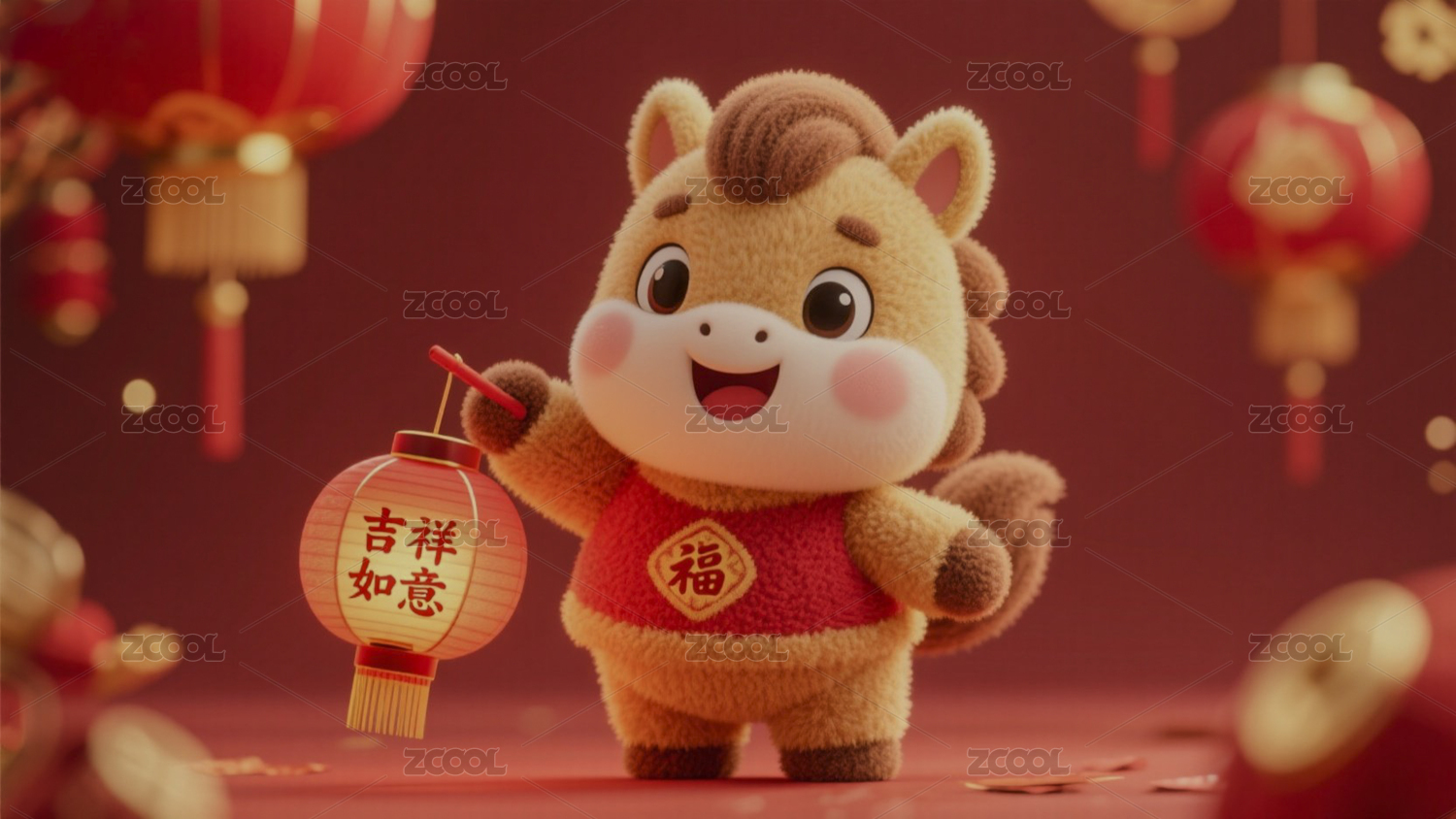 萌马福字新春氛围场景