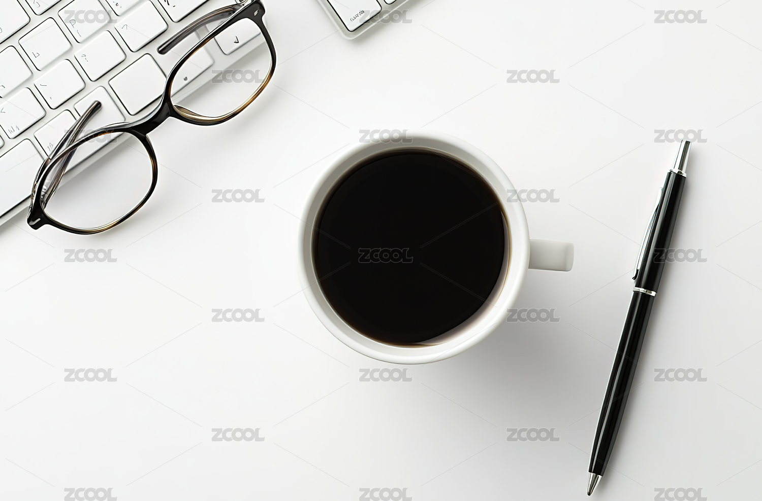 白色背景上的商务签字笔电脑咖啡