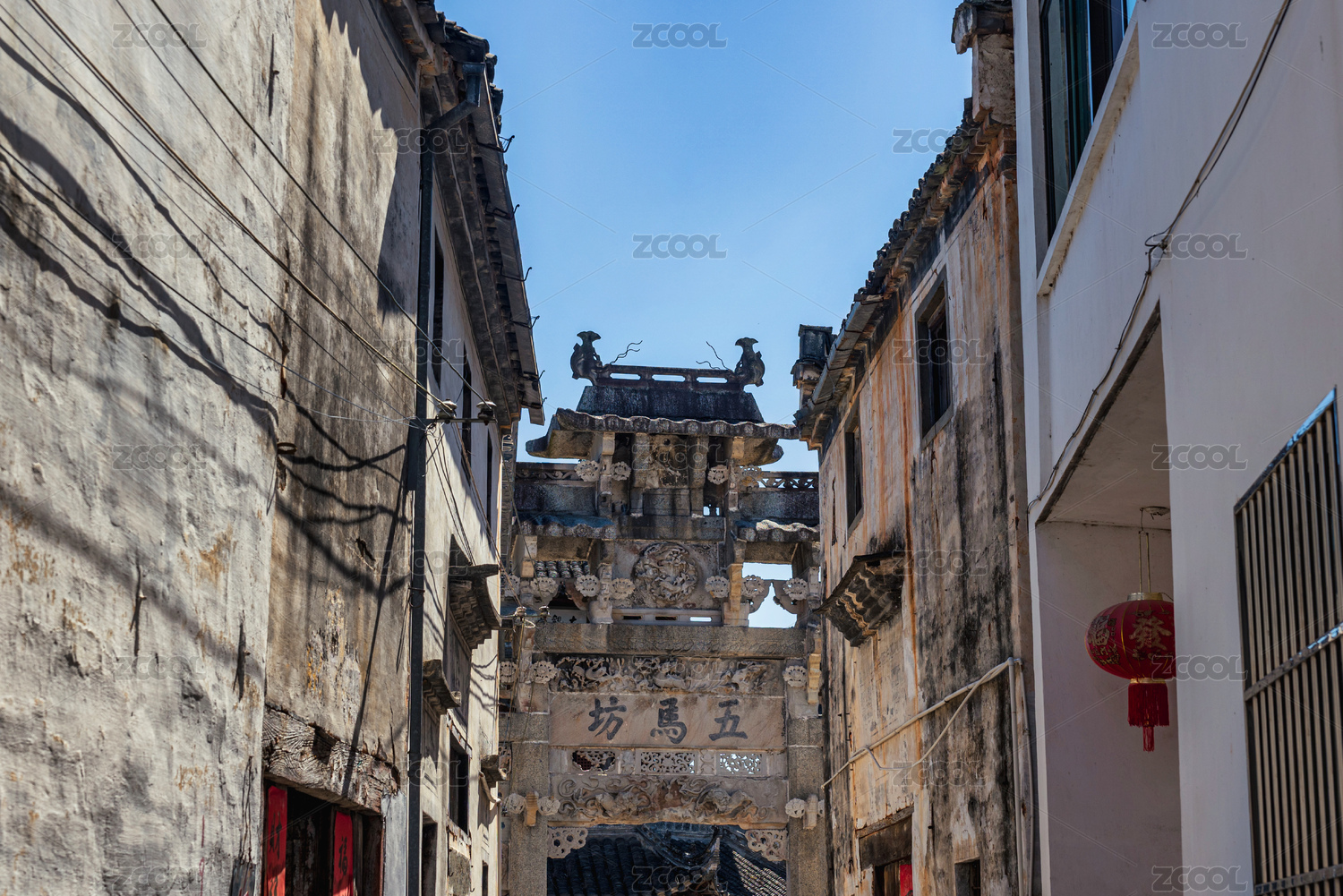 皖南徽派民居小巷拱门,中国安徽省黟县卢村