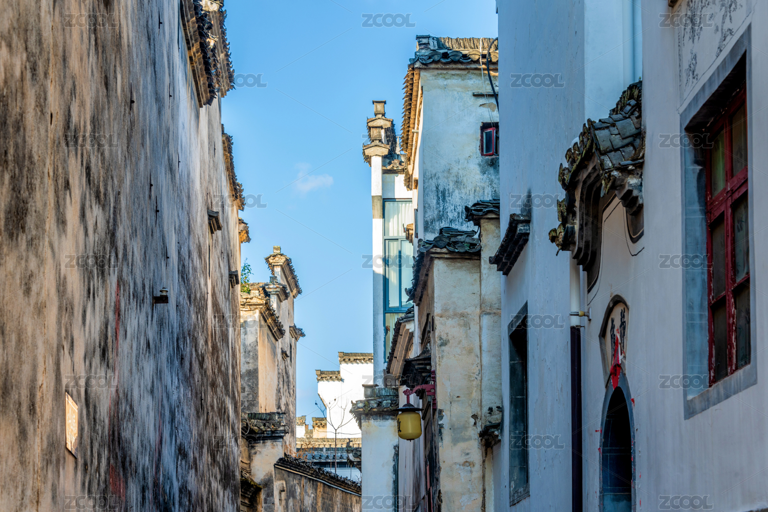 皖南徽派民居小巷子,中国安徽省黟县卢村