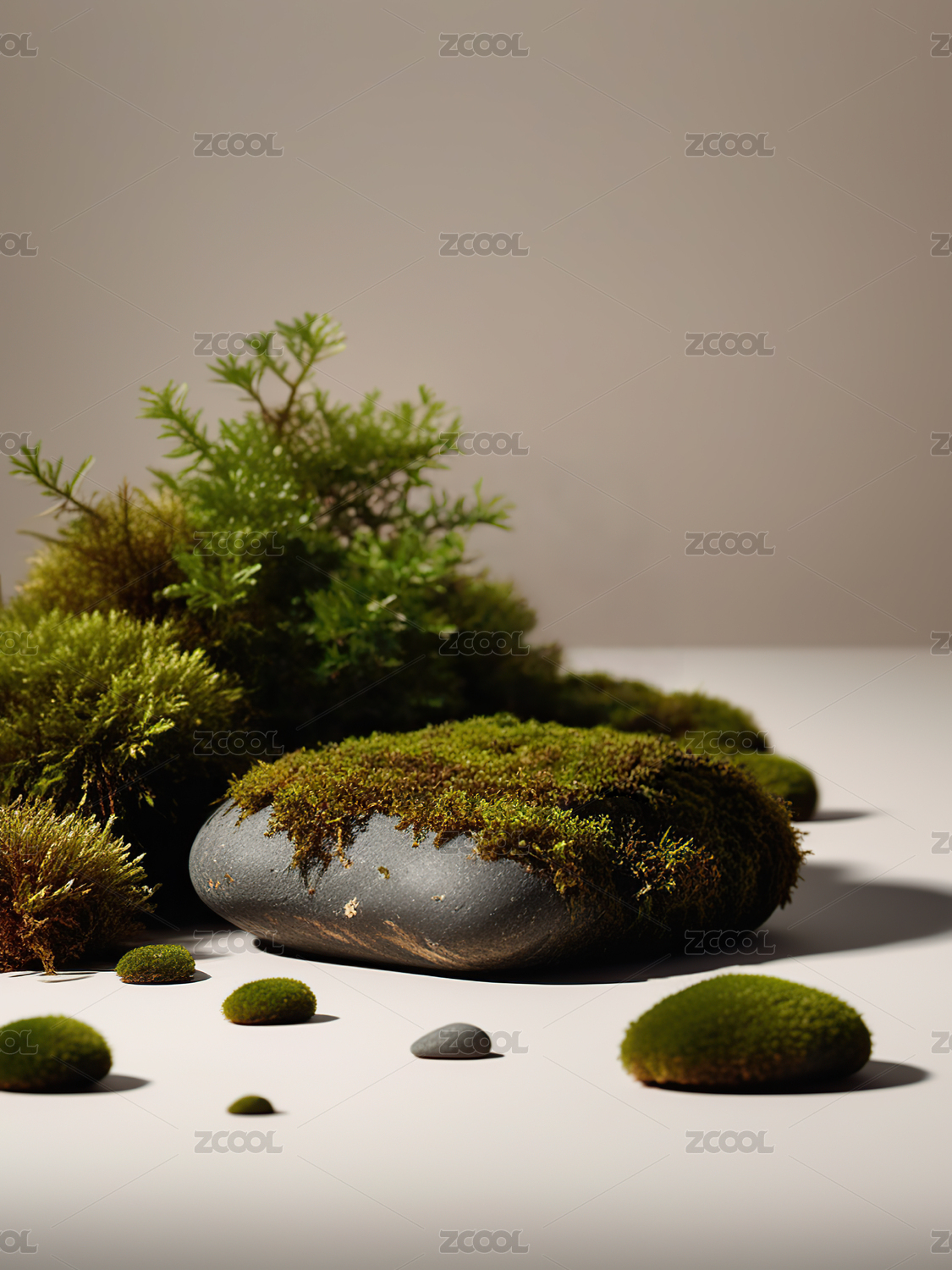 电商,场景,广告,气氛图,石头,苔藓,自然,美妆,洗护,化妆品