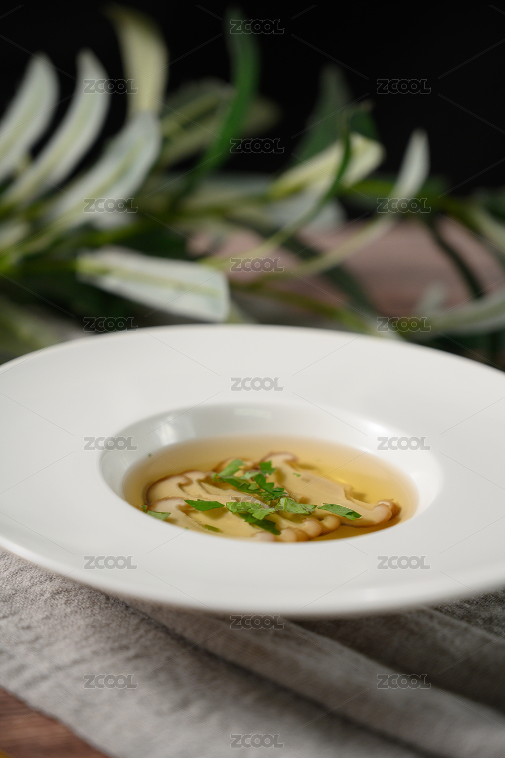 桌面上的盘子里的美味可口的清汤白玉云耳
