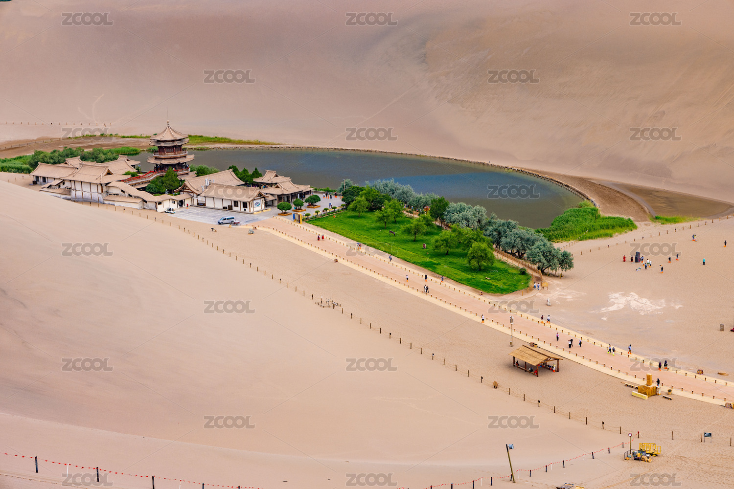 中国甘肃敦煌鸣沙山月牙泉景区在夏天的美丽风景