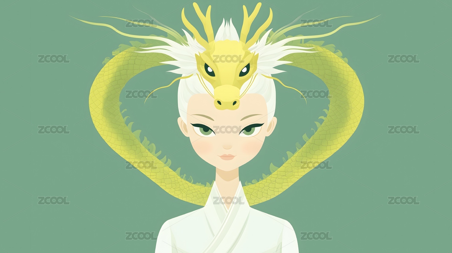 中国风龙与美女卡通插画
