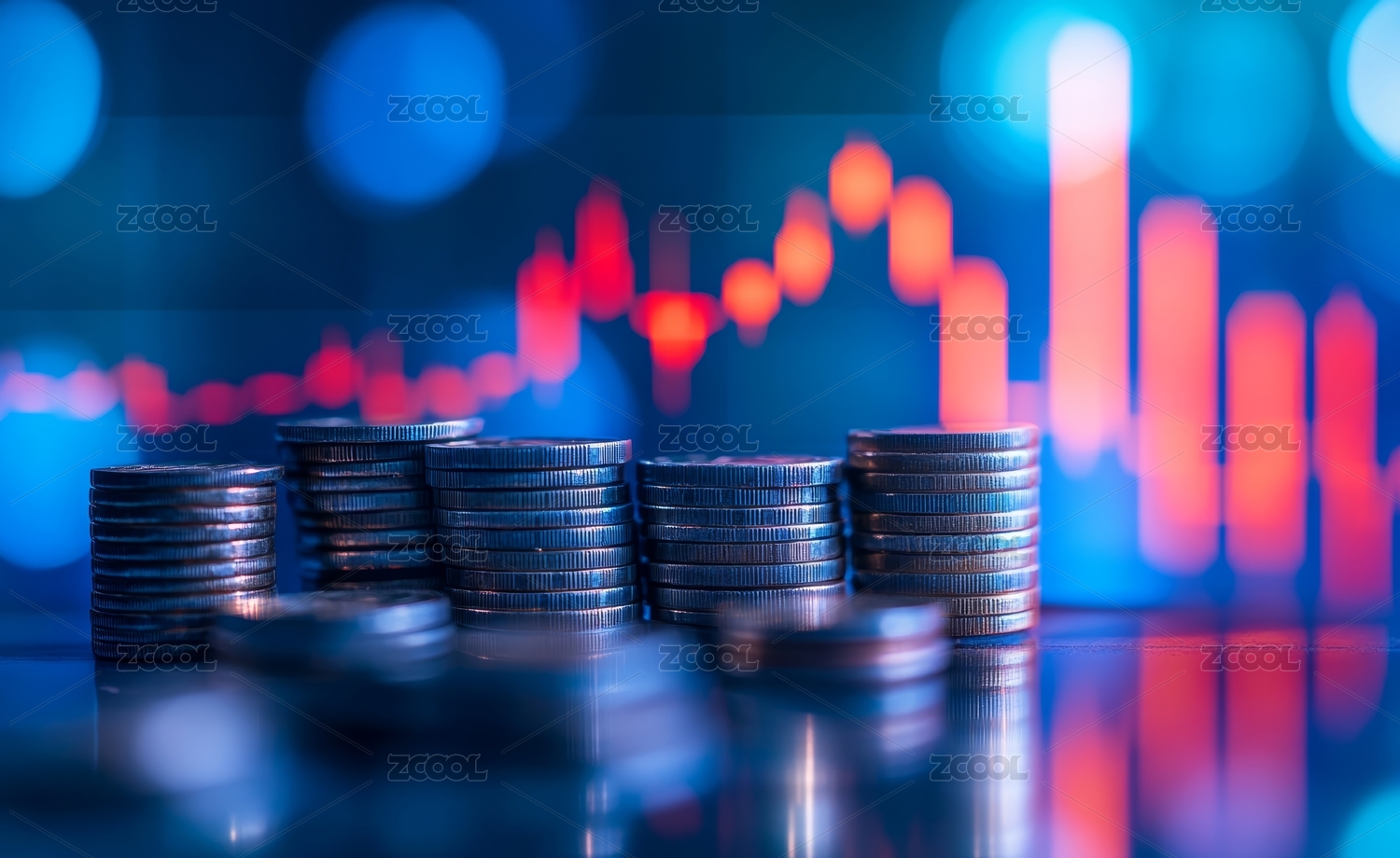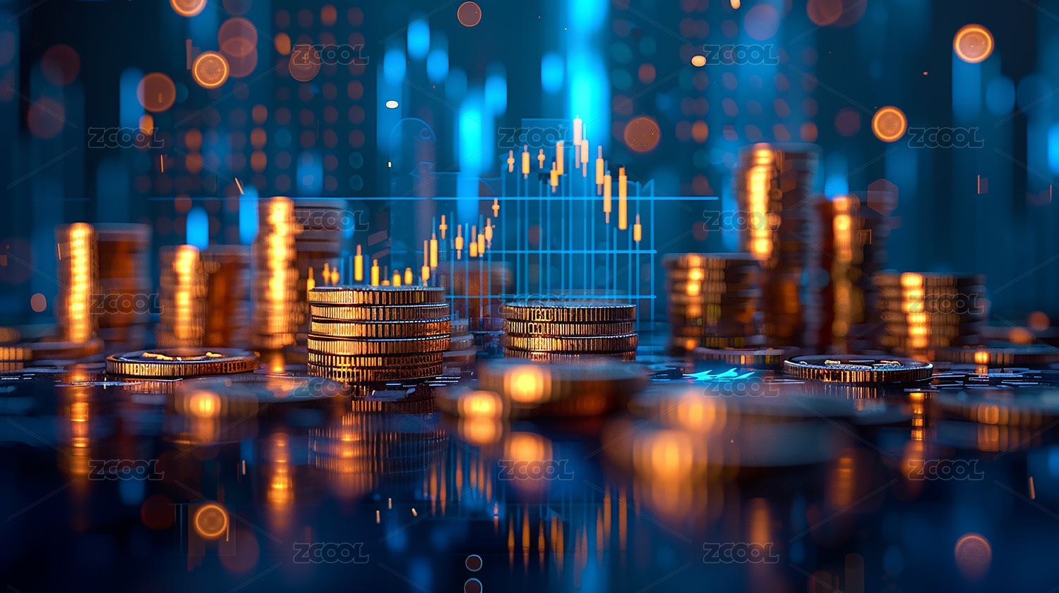 金融股市背景前堆叠的金币