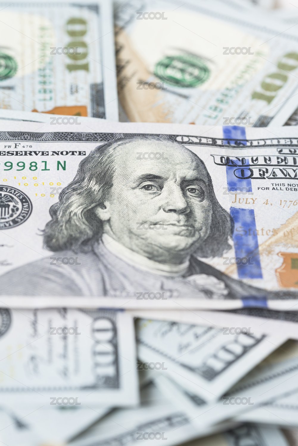 微距下的100美元纸币细节
