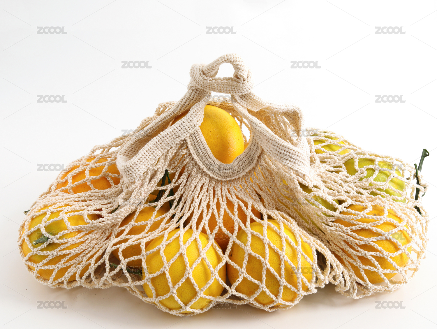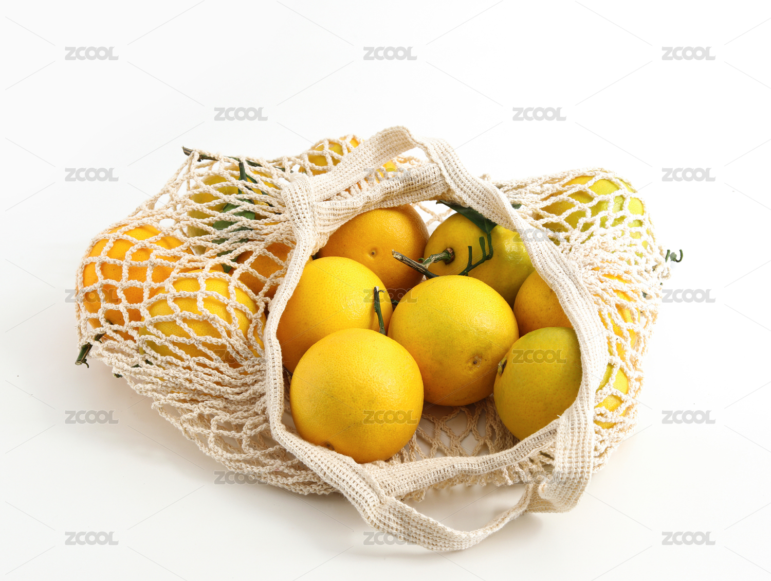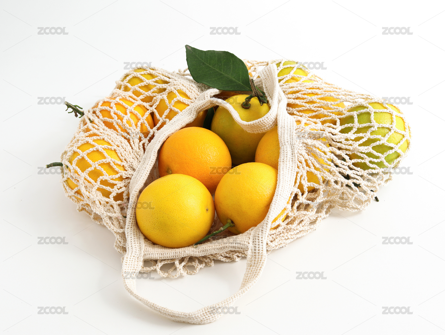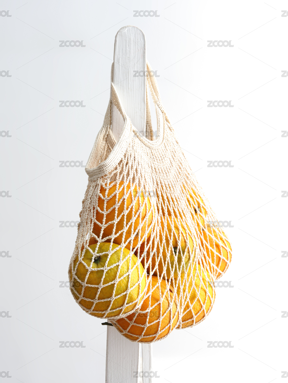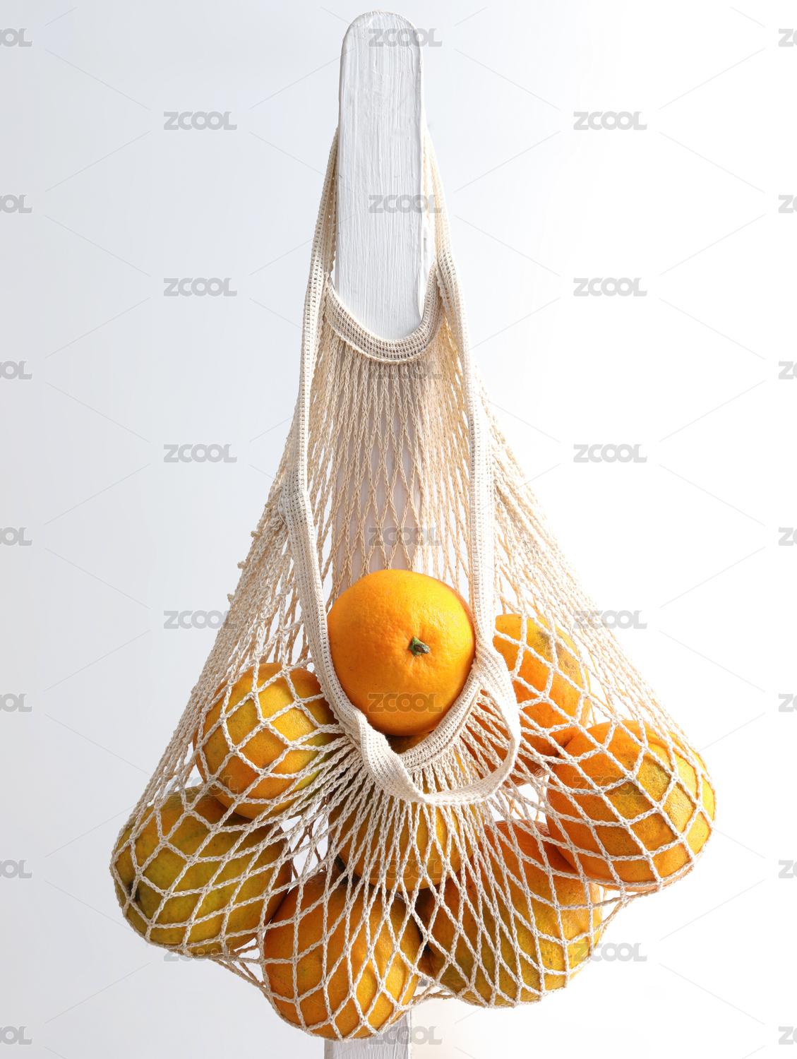 白色椅子上挂着一袋子新鲜的水果橙子脐橙