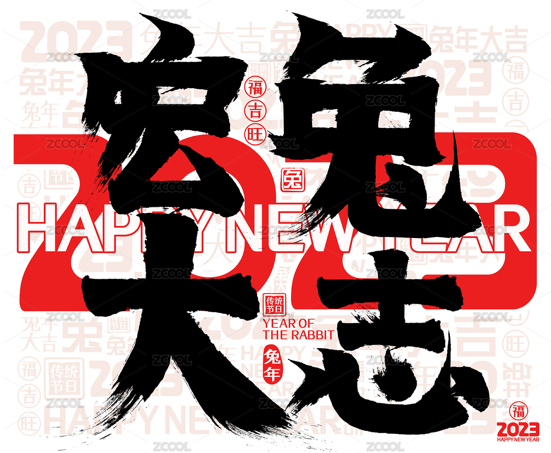 2023兔年大吉喜庆中国红春节新年毛笔字