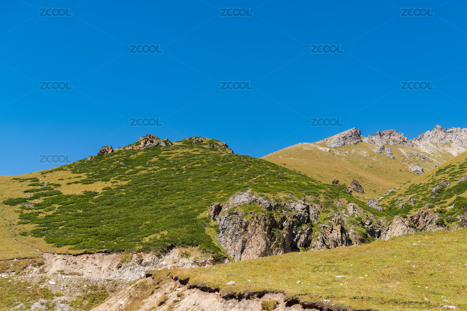 长满草的黄绿色大山