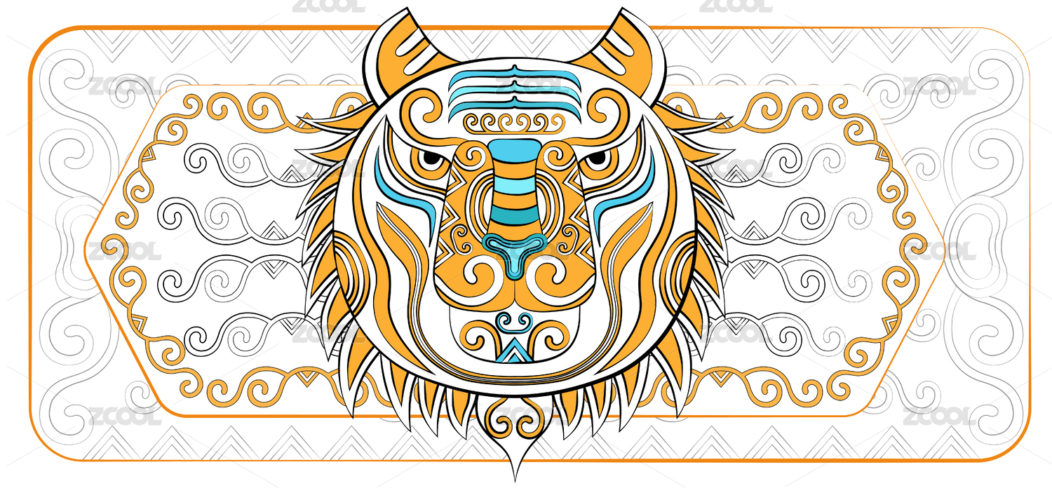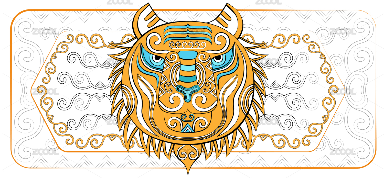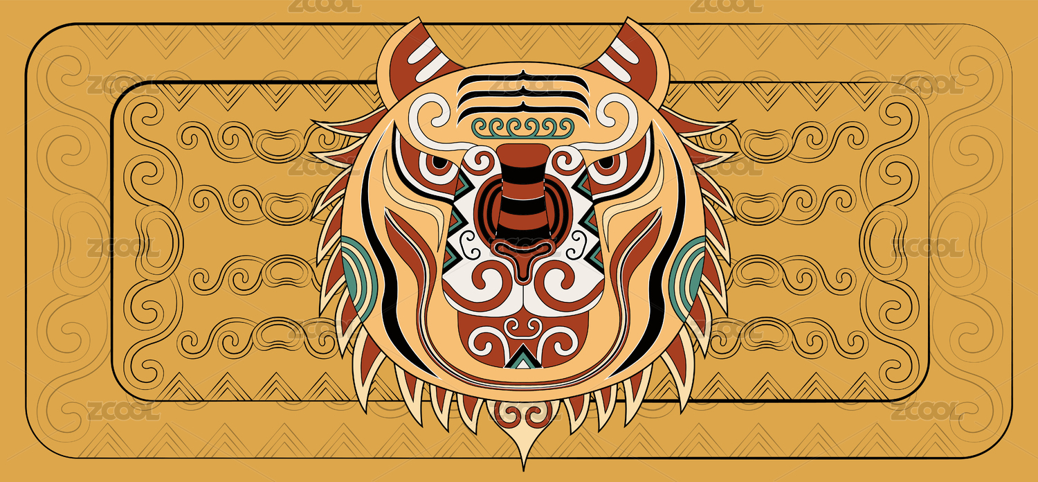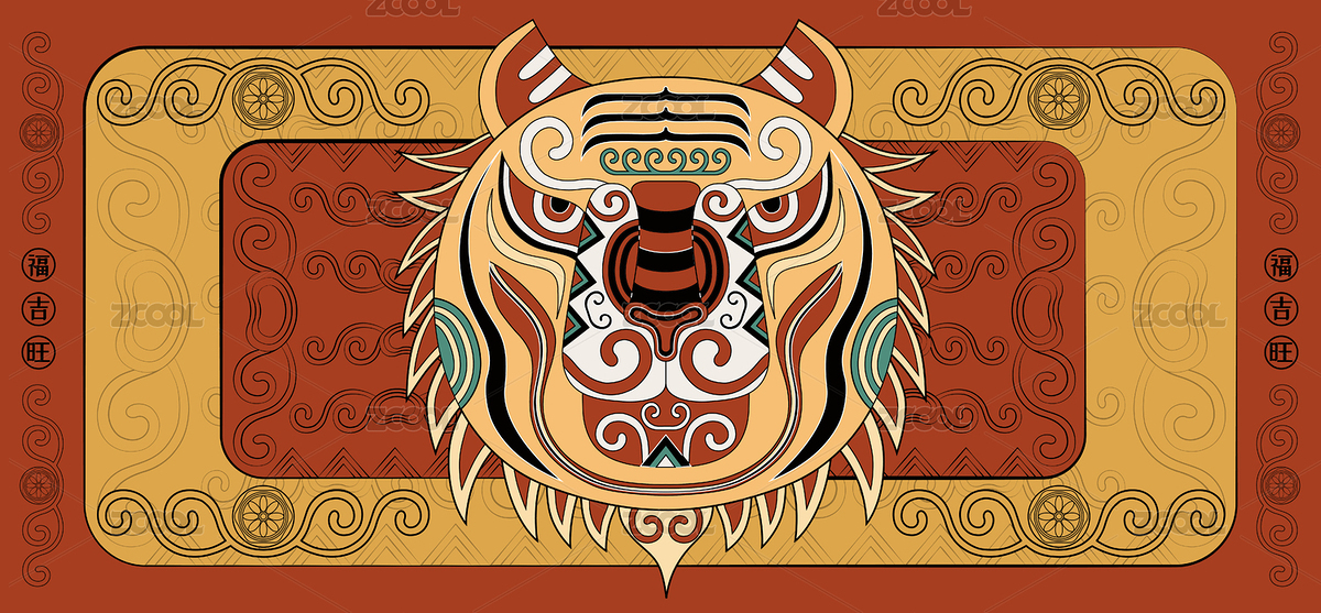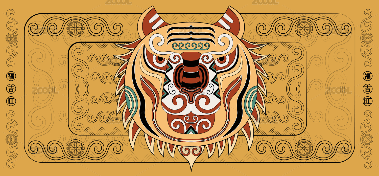 潮流中国风虎十二生肖时尚印花纹样矢量插画