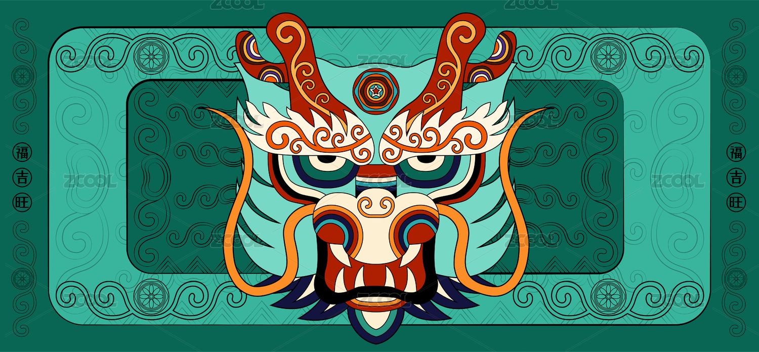 辰龙十二生肖国潮传统艺术装饰纹样卡通形象