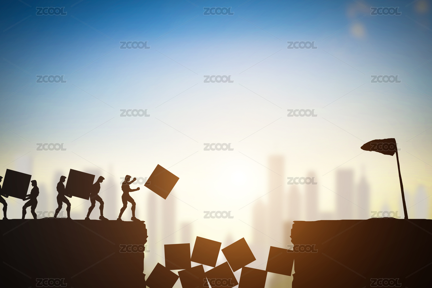 剪影,合作,团队,桥,桥梁,悬崖,峭壁,方法,战略,战术