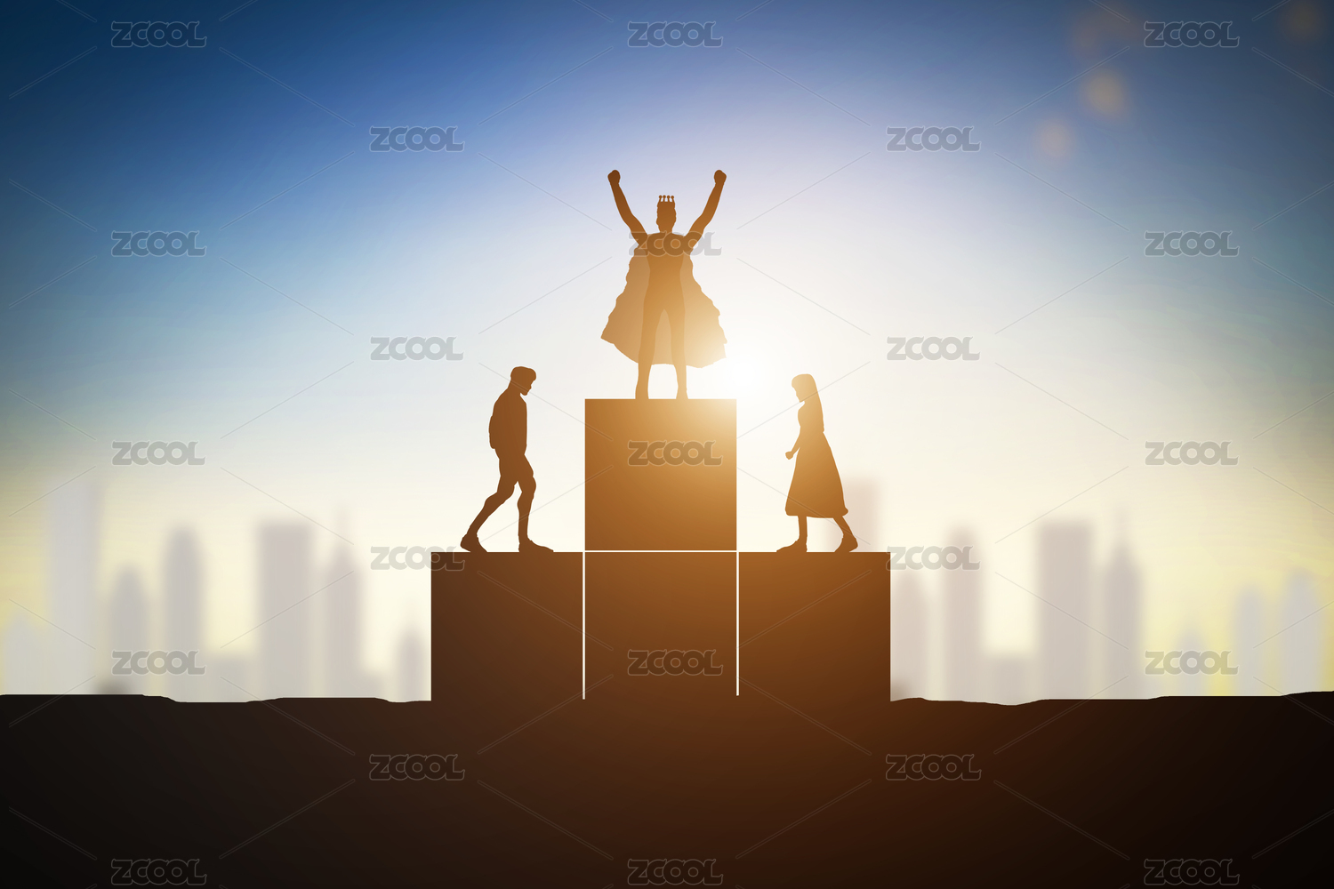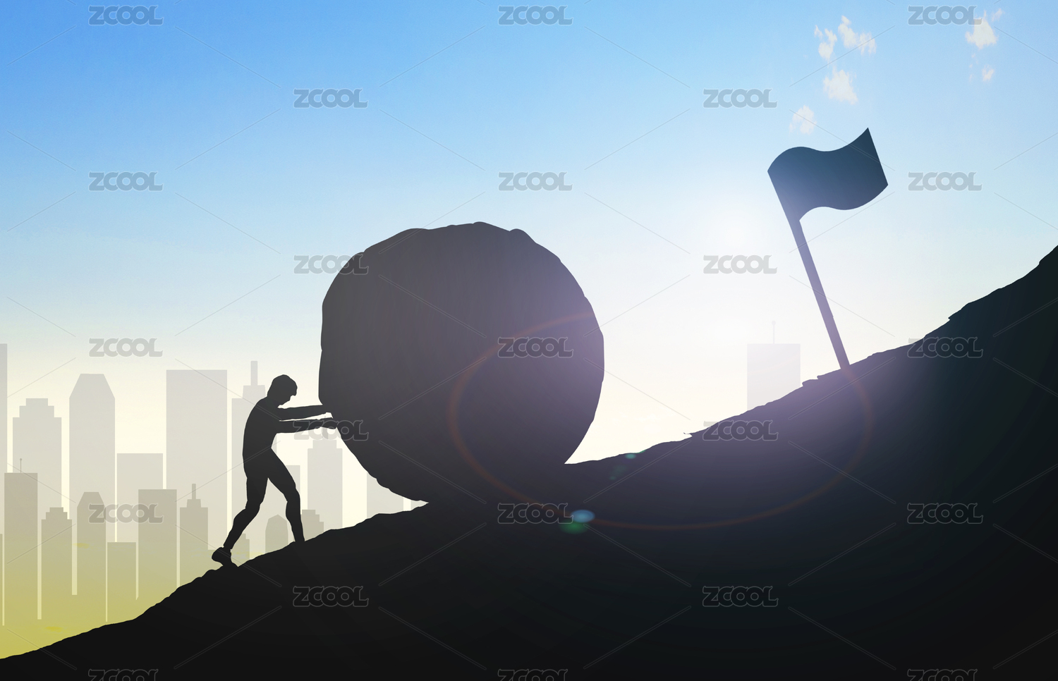 商务商业剪影人物推着石头竞争拼搏对抗概念