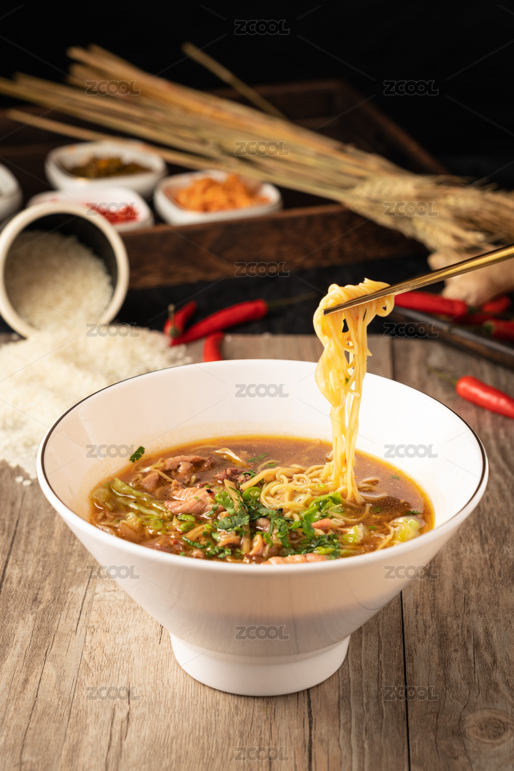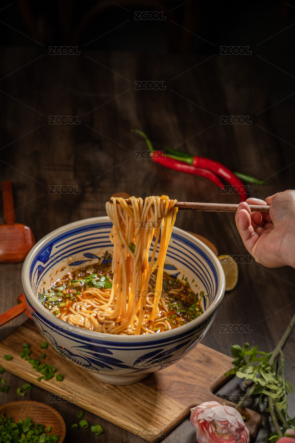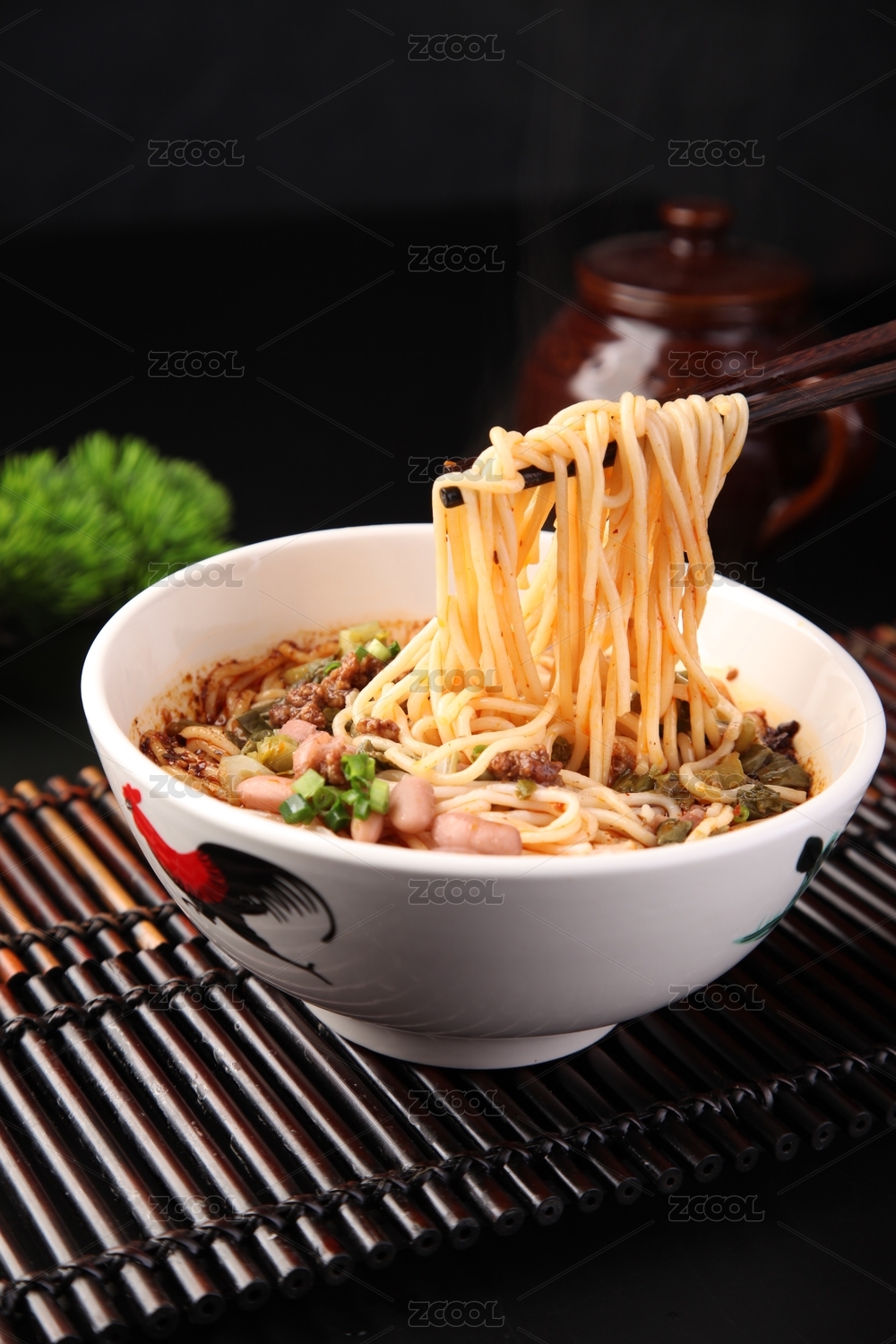 大碗里筷子挑着面挑的重庆小面麻辣杂酱面