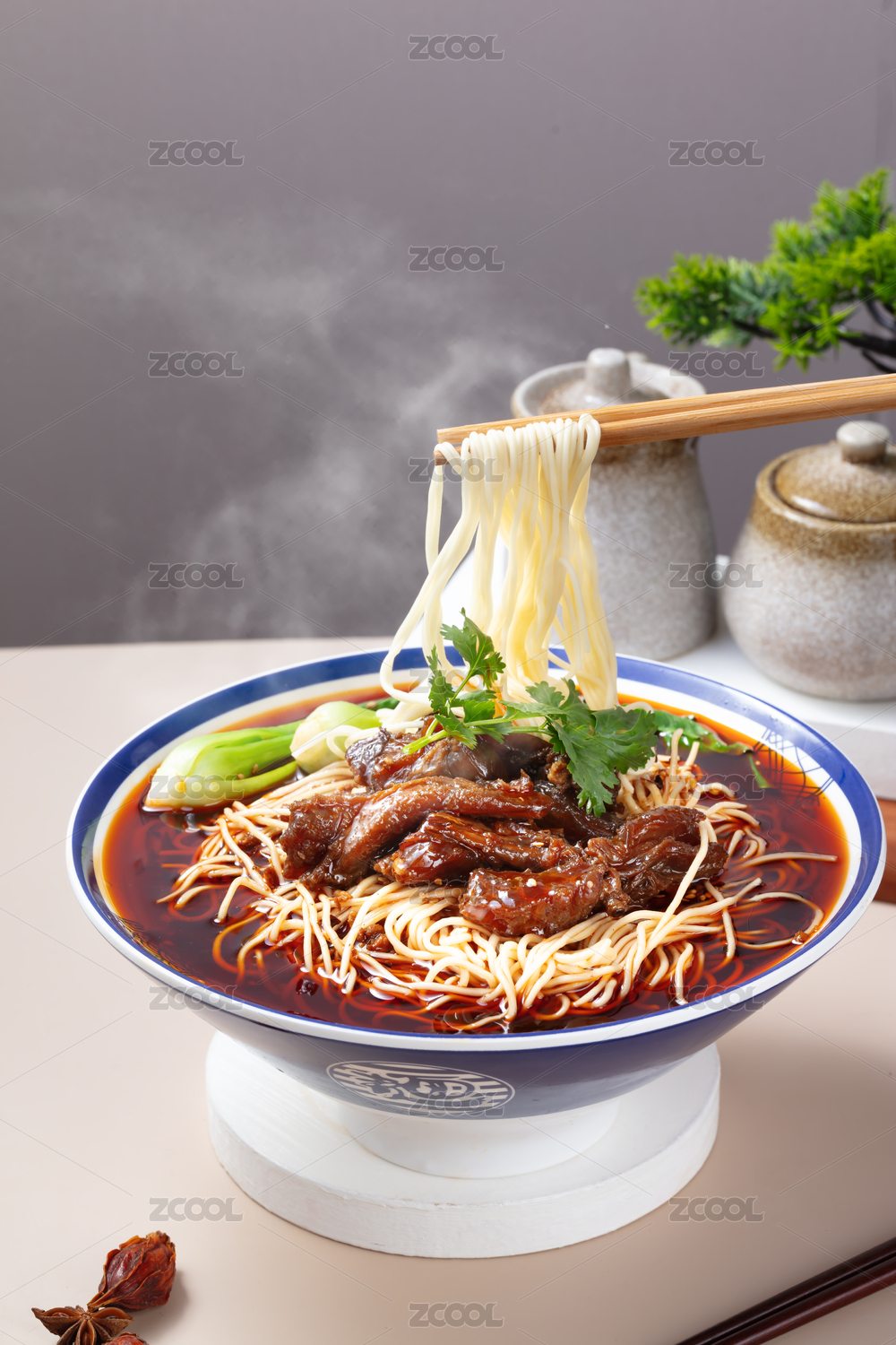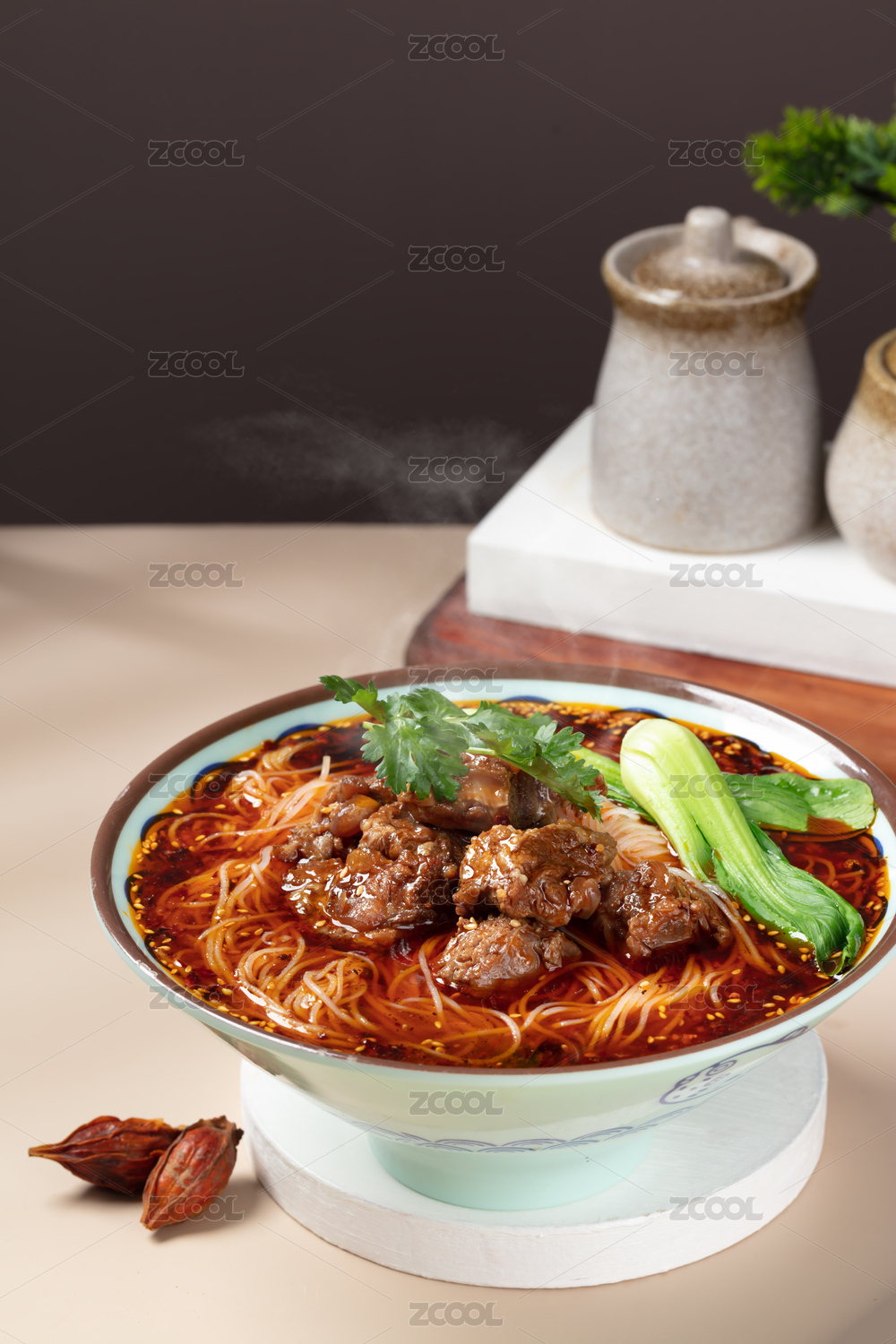 青花瓷大碗里的麻辣牛肉面重庆小面